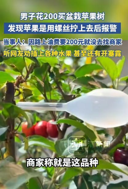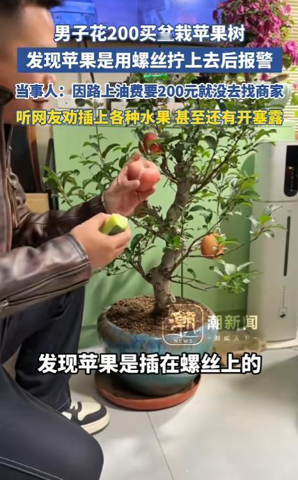 天津,一男子逛市场时,看到一盆很有意思的盆景,里面很矮的一株苹果上竟然结出了好几个拳头大的苹果,男子觉得新奇,便花了200元买下了,谁知,拿回家没多久就发现那些苹果居然是用螺丝拧上去的!男子气得直接报了警。 腊月的天津,街头巷尾都飘着年味儿,市区的中环花鸟鱼虫市场里更是热闹非凡,这处天津老牌的花鸟市场,平日里就挤满了逛集的市民。 临近春节,绿植盆栽摊位前的人气更是居高不下,吆喝声、讲价声混着花草的清香,凑成了最地道的津门市井烟火气。 市场里的绿植区挨挨挤挤摆着各式盆栽,多肉、绿萝、年宵花一应俱全,一男子沿着摊位慢慢走,目光突然被一盆摆在角落的苹果树盆栽吸引住了。 这盆盆栽看着格外特别,植株不算高,也就五六十公分的样子,比寻常的矮化果树还要矮小,枝干细细的,扎根在一个古朴的陶制花盆里,盆土看着疏松肥沃。 可就是这样一株不起眼的矮株苹果树上,却挂着四五个拳头大的红苹果,果子红亮诱人,果形周正,沉甸甸地坠在枝头,和矮小的植株形成了鲜明的对比,任谁看了都会觉得稀奇。 男子停下脚步,蹲在摊位前看了半天,他平时也偶尔关注过盆栽果树,知道市面上的矮化苹果盆栽,结果量都比较少。 果子也多是小巧的模样,从没见过这样矮的苹果树,能结出这么大又这么多的苹果,心里顿时觉得捡到了稀罕物。 摊主见男子看得入神,便上前搭话,说这是少见的矮化苹果品种,专门培育来做盆栽的,不仅株型小巧不占地方,冬季也能挂果,摆在阳台又好看又有新意,还好养活。 男子听着摊主的介绍,越看越喜欢,想着春节快到了,摆一盆这样的盆栽在家,既添年味又显特别,便问了价格。 摊主报出 200 元的价格,男子琢磨着这个价钱不算贵,当场就扫码付了钱,小心翼翼地拎着这盆苹果树盆栽,满心欢喜地离开了市场。 一路上还跟旁边逛集的大爷聊了两句,说自己淘到了个好东西,大爷也凑过来看了看,直呼这盆栽稀奇,这让男子心里更觉得值当。 拎着盆栽回到家,男子第一时间就把它摆在了阳台的显眼位置,还特意找来了浇水壶,想给盆土浇点水,好好打理这盆 “稀罕物”。 他看着枝头红亮的苹果,想着上面沾了点市场里的浮尘,便伸手想擦一擦苹果表面,可这一碰,却发现了不对劲。 原本看着沉甸甸挂在枝头的苹果,被手指轻轻一碰,竟然晃悠悠的,完全没有自然结在枝头上的紧实感。 男子心里咯噔一下,赶紧凑近了仔细看,这才发现苹果的果柄处,藏着一个小小的金属螺丝头,被一点点胶水掩盖着,不仔细看根本发现不了。 他试着用手指轻轻拧了一下,这颗拳头大的苹果,竟然真的跟着转了起来,这下男子彻底懵了,连忙挨个检查枝头上的所有苹果,结果每一个苹果,都是用螺丝硬生生拧在枝干上的。 枝干上还留下了一个个小小的螺丝孔,部分孔位还抹了胶水,刻意掩盖了痕迹,就连这株他以为的苹果树,仔细看叶片和枝干的形态,也根本不是正宗的苹果树品种。 看着眼前这盆被 “改造” 过的盆栽,男子又气又无奈,自己花 200 元买的新奇盆栽,竟然是商家用这样的手段造假的,当场就拿出手机打了 110 报警。 电话里,男子跟民警详细说明了情况,包括自己在中环花鸟鱼虫市场哪个区域买的盆栽,摊主的大致模样,以及自己花 200 元购买的全过程。 民警耐心做了笔录,告知他要保留好这盆盆栽和当时的付款记录,后续如果需要配合调查会及时联系他。 男子说,自己住的地方离中环花鸟鱼虫市场有十多公里的路程,平日里要上班,时间本就紧张,往返市场不仅要花不少时间,路费也不算少。 整体的维权成本比这盆 200 元的盆栽还要高,所以暂时也就没有特意去找商家对峙,只能先等着民警这边的处理消息。 而这盆被拧上苹果的盆栽,也被他好好保留着,作为商家造假的证据,等着后续的处理。 选购盆栽的时候,别被那些看着稀奇古怪的外观迷惑了眼,上手多检查检查细节,比如摸摸果子的紧实度、看看花叶和枝干的连接处一旦发现买到了造假的盆栽,一定要第一时间保留好证据,及时联系 12315 消费者投诉举报专线或者报警维权。 别因为觉得金额不大就自认倒霉,只有这样,才能不让那些无良商家钻了空子,也能避免自己花了冤枉钱,还坏了春节的好心情。 对于这件事,您有什么想说的吗?欢迎评论区留言讨论。 信源:潮新闻2026-02-05——《男子花200买盆栽苹果树,发现苹果是用螺丝拧上去后报警,当事人:因路上油费要200元就没去找商家,听网友劝插上各种水果 甚至还有开塞露》