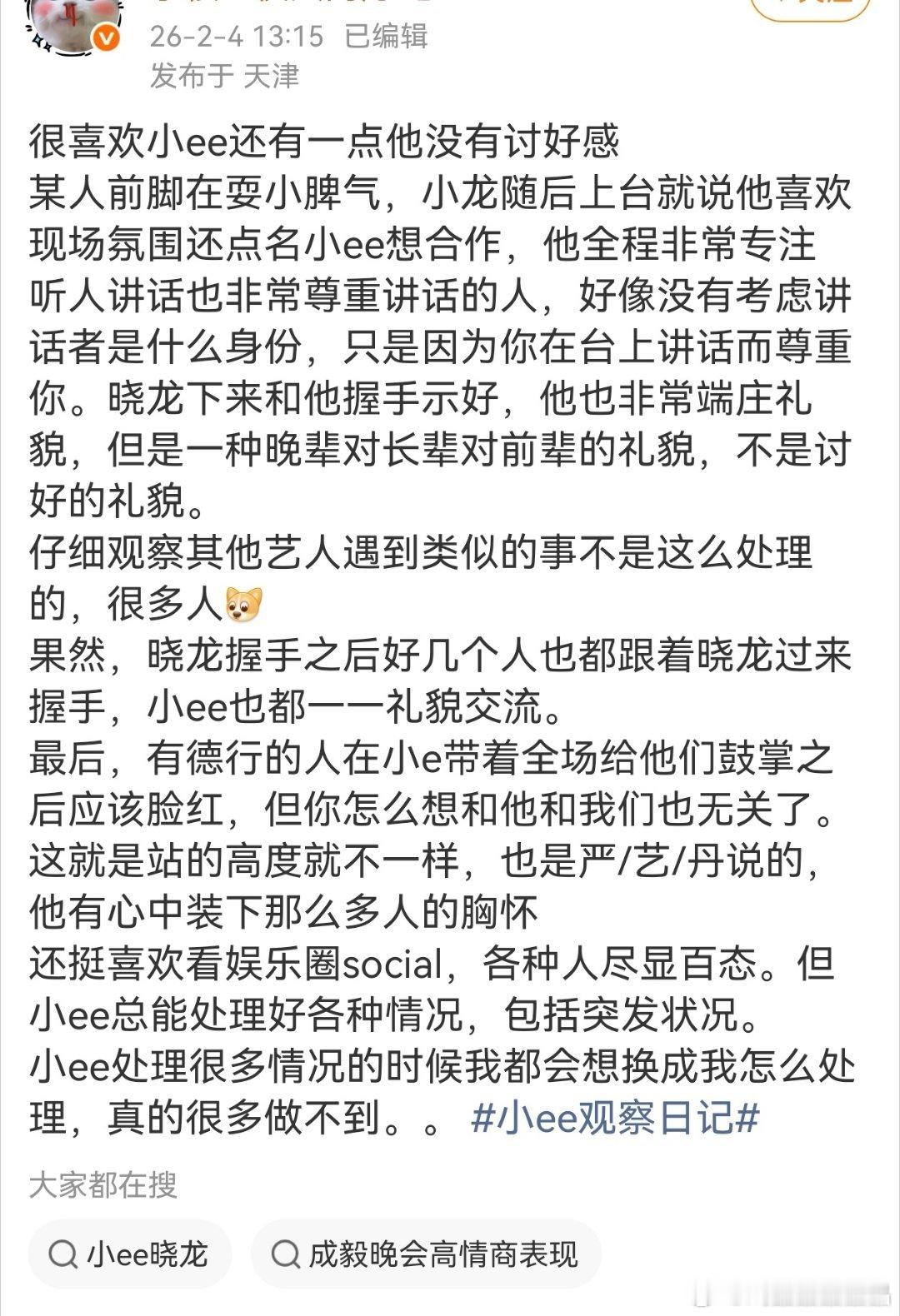老呃有没有讨好感,我也没参加过他的饭局,私底下不清楚,不过大猫那个记者说他在饭局上长袖善舞。