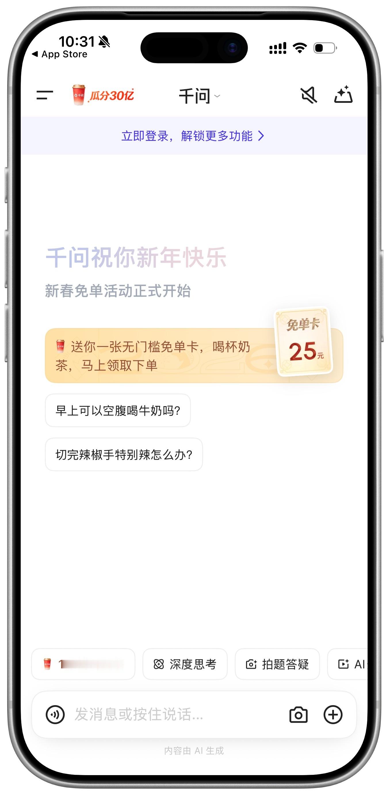 千问 免费奶茶 万万没想到我第一次下千问竟然是为了薅羊毛。