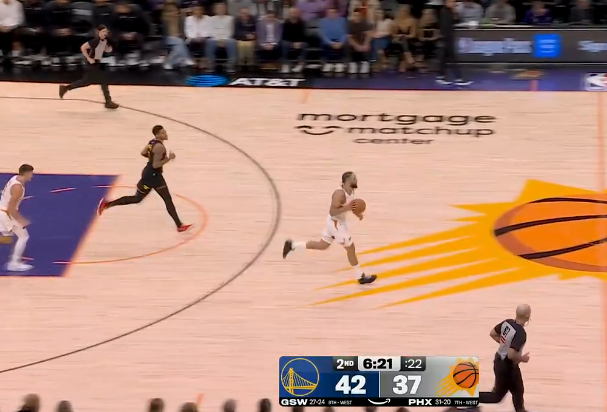 NBA常规赛,勇士对阵太阳的比赛正在进行中。