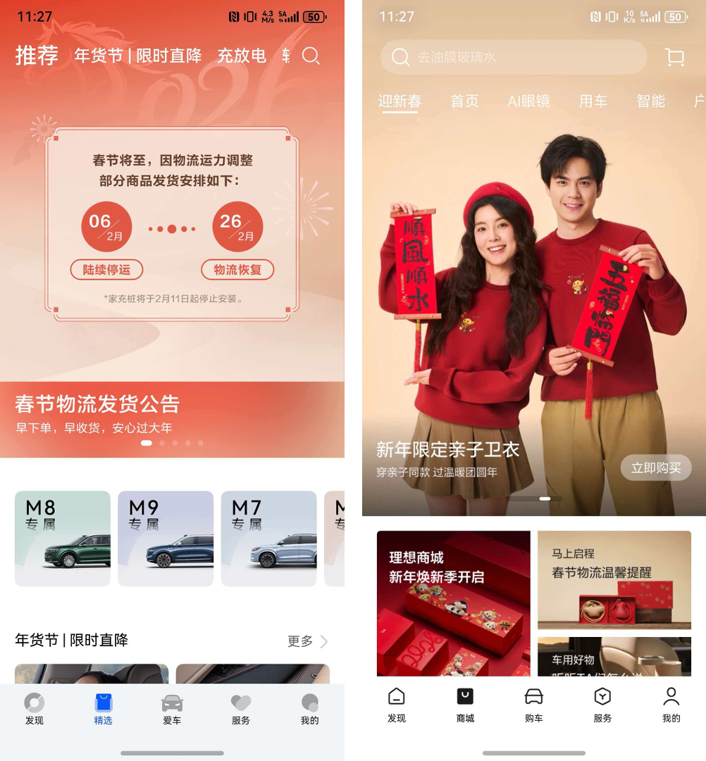 问界M8车主朋友感受了一下同样是商城的首页,对比比较明显。