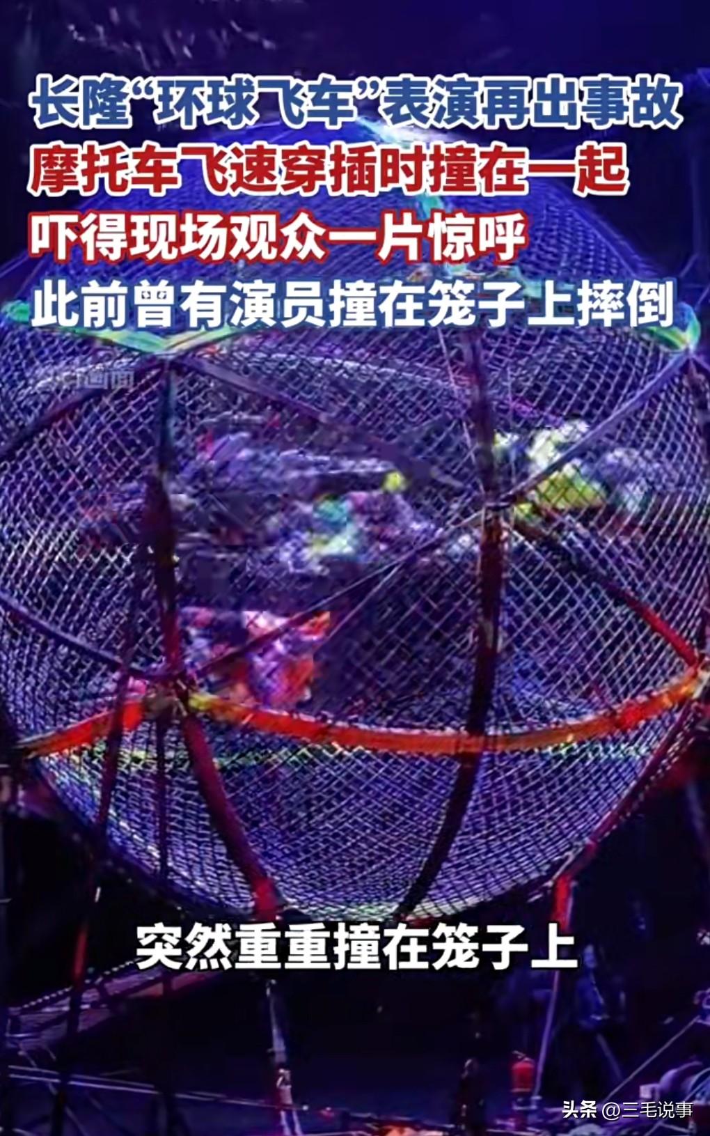 这么小的空间,好几辆摩托在里面驾驶,不撞上才怪。 不怕一万就怕万一。 2月5日,有网友发文称,当天下午,长隆表演出事故,摩托车撞在一起。 吓得观众惊呼。 这个表演确实有很大的危险性,建议永久取消。 因为这样的表演专业性太强了,一个不小心很容易出意外。 此前就发生过演员撞在笼子上摔倒的事件。