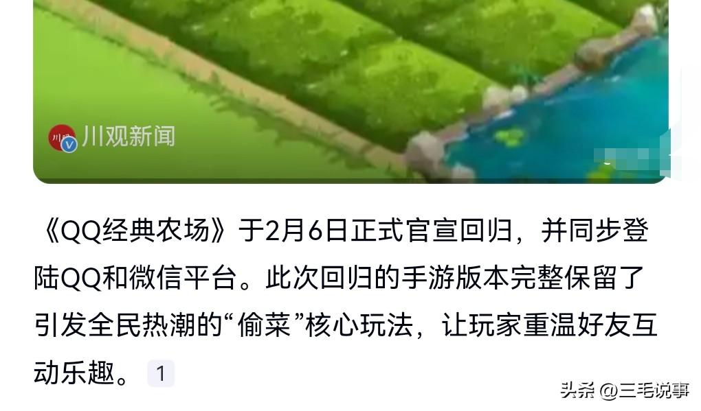 想当年QQ农场还是很火的,有的甚至半夜起来都偷菜,也是有趣了一段时间。 后来慢慢就不行了,后来慢慢就放弃这个项目了。 没想到它又回来了。 2月6日热搜,又能半夜偷菜了,QQ农场回归。 不知道还能不能回到以前的高光时刻。 我对此抱以谨慎的态度。 不过回归也好,人多人少,相信总有一些玩家会选择玩。