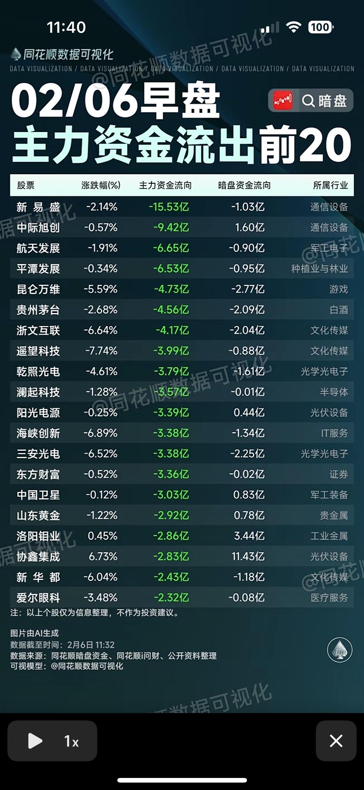 2月6日早盘主力资金流入前20名股票分析,投资参考! 早盘主力资金流入前20股