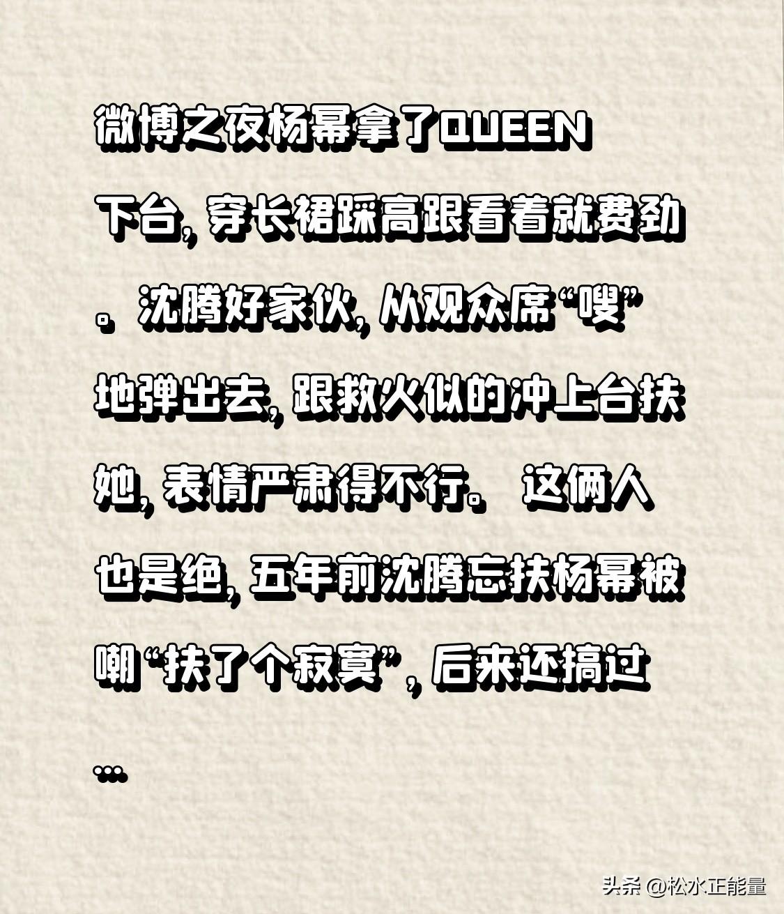 微博之夜杨幂拿了QUEEN下台,穿长裙踩高跟看着就费劲。沈腾好家伙,从观众席“嗖”地弹出去,跟救火似的冲上台扶她,表情严肃得不行。 这俩人也是绝,五年前沈腾忘扶杨幂被嘲“扶了个寂寞”,后来还搞过“蹦迪式搀扶”。这次沈腾算是把“肌肉记忆”焊死了,杨幂被他冲得憋笑憋到脸都僵了,网友笑疯:二舅终于长记性,这搀扶连续剧圆满收官!