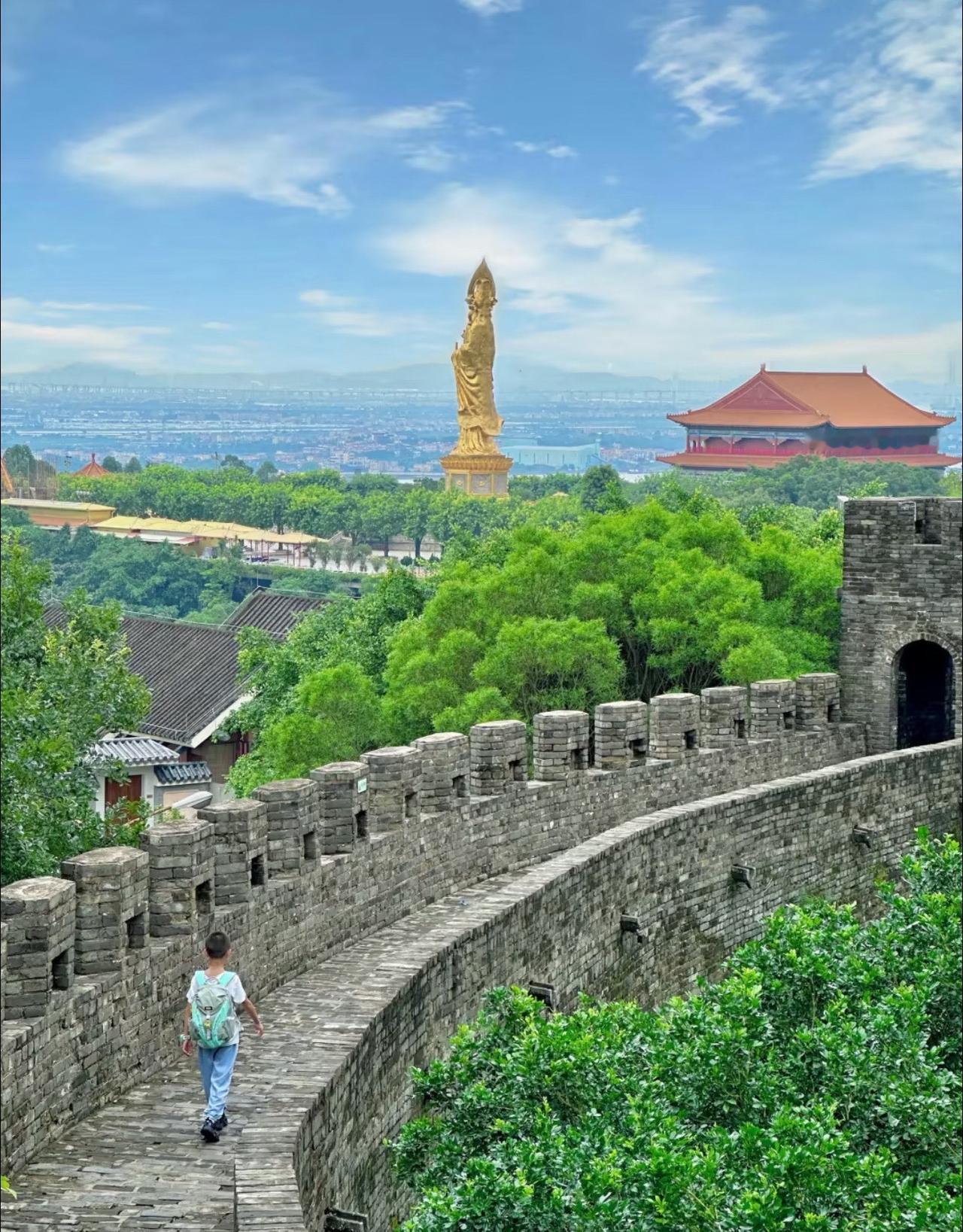 广州古长城和丹霞奇观 📍广州 广州莲花山旅游区 0元玩转这座城 如果你也喜欢寺庙文化、禅意生活, 建议来一下广州番禺莲花🪷山。 一站式徒步、祈福[双手合十]、观景、住宿,太适合周末轻松独家⛱️ 📷必看景点: 1、古采石场丹霞秘境(图四) 2、莲花🪷城小长城(图三) 3、望海观音&莲花塔(图二) 愿所求皆所愿
