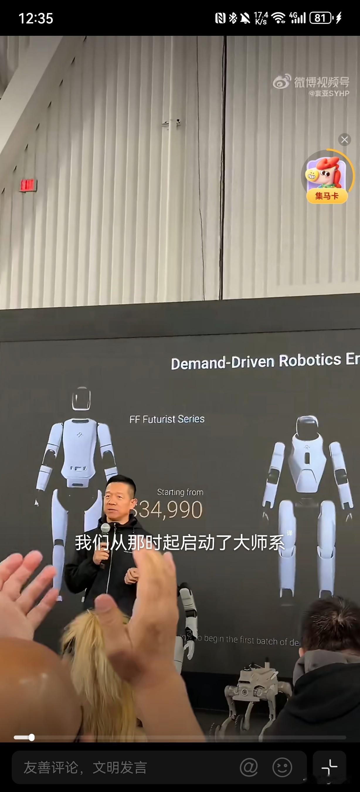 贾跃亭又又又站在风口上了!从乐视的生态化反,到FF汽车的量产跳票,再到今天的拉斯维加斯NADA大会,他带着FF三大系列具身智能机器人闪亮登场,誓要在人形机器人赛道里再割一波韭菜。 这次他带来的全尺寸人形机器人Futurist、运动型机器人Master和四足机器人Aegis,纸面参数对标特斯拉Optimus,价格却直接砍半,发布会现场就拿下1211台预订单,场面一度火爆。 但大家心里都在打鼓:FF汽车至今才交付20多台,这机器人“发布即交付”的承诺,你敢信吗?核心技术自研比例、实际场景测试数据全是迷,这不又是换个壳子炒概念? 更要命的是,汽车和机器人双线烧钱,本就千疮百孔的资金链还能撑多久? 贾跃亭的每一次华丽转身,都像一场精心设计的资本魔术。从生态化反到造车神话,再到今天的机器人故事,他永远能精准踩中热点,用“颠覆性创新”画大饼,让资本为他的梦想买单。 这一次,人形机器人的风口,到底是他翻身的跳板,还是又一场“为梦想窒息”的表演?咱们就看2月底的交付现场,是真交付,还是又一次跳票的开始。