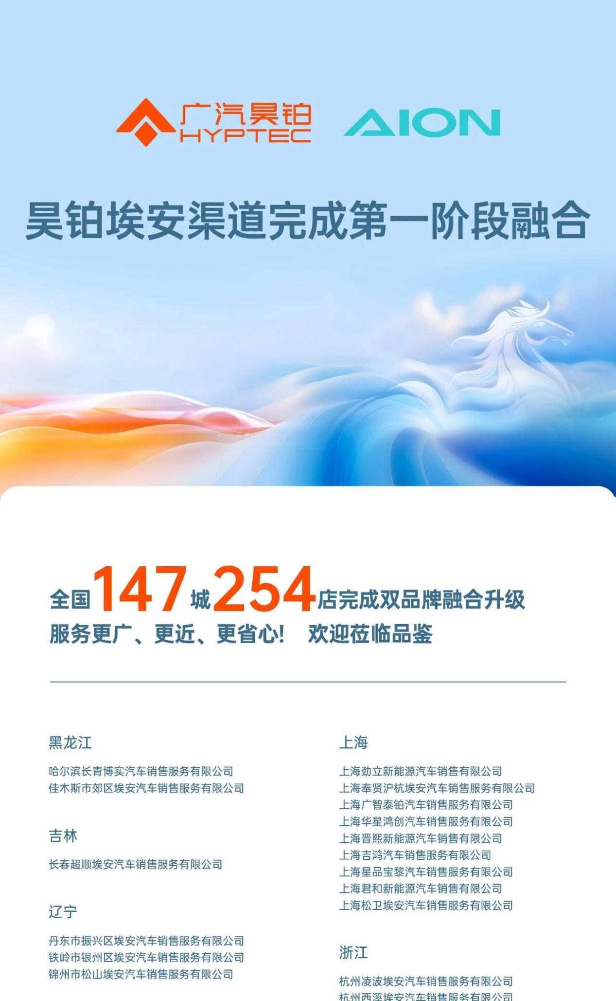 昊铂埃安BU渠道融合第一阶段圆满收官!截至1月31日,全国147城254家门店完成双品牌升级,未来将拓展至千店规模,实现全域服务覆盖。