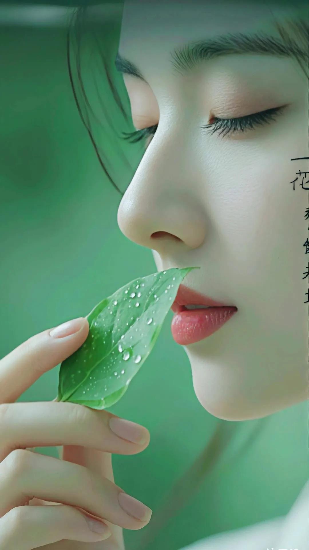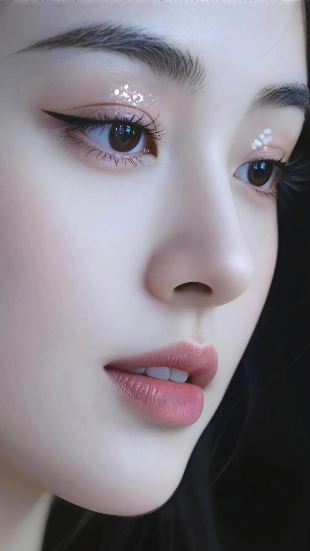 温柔甜美的侧颜,粉嫩唇妆,梦幻少女心