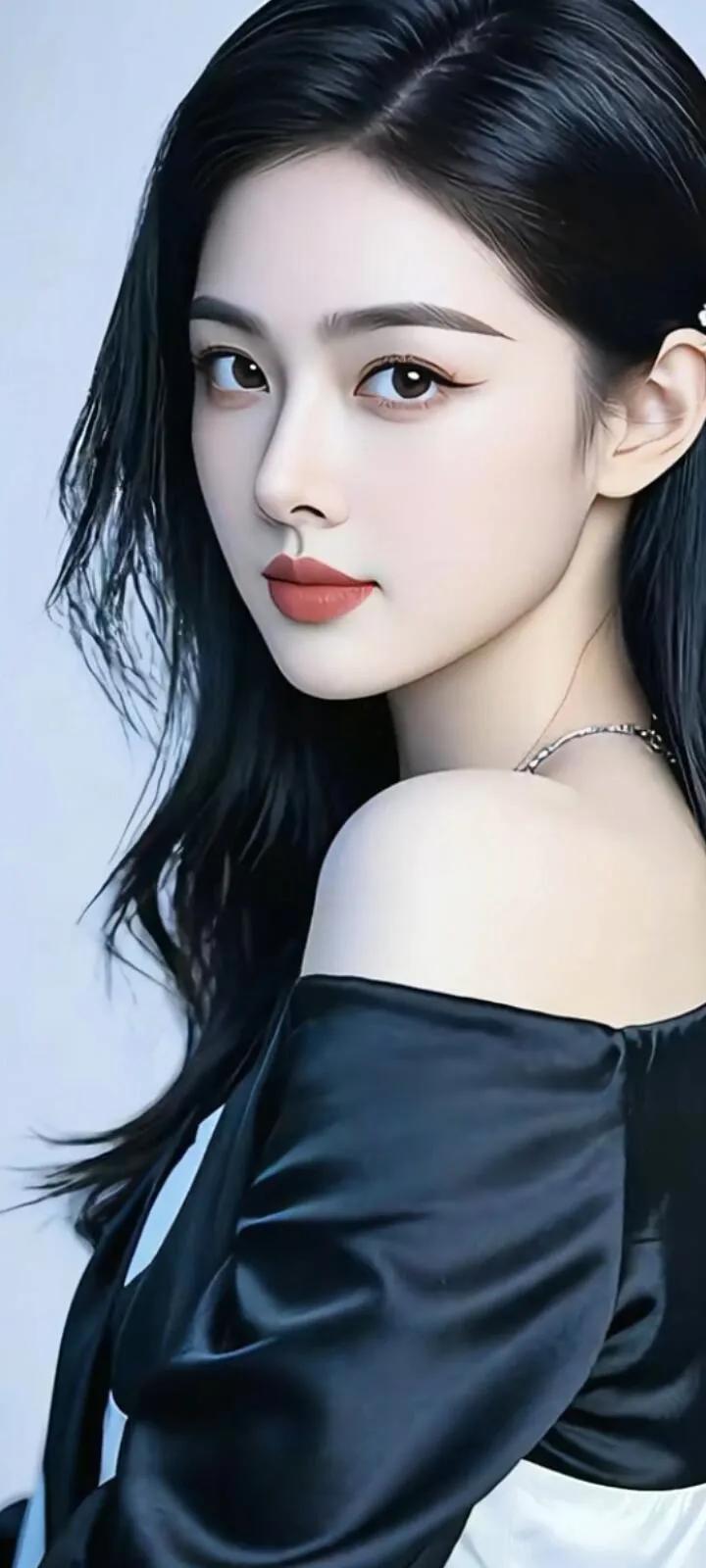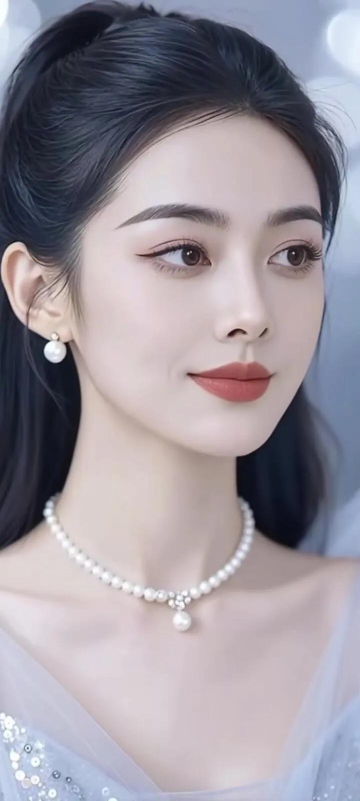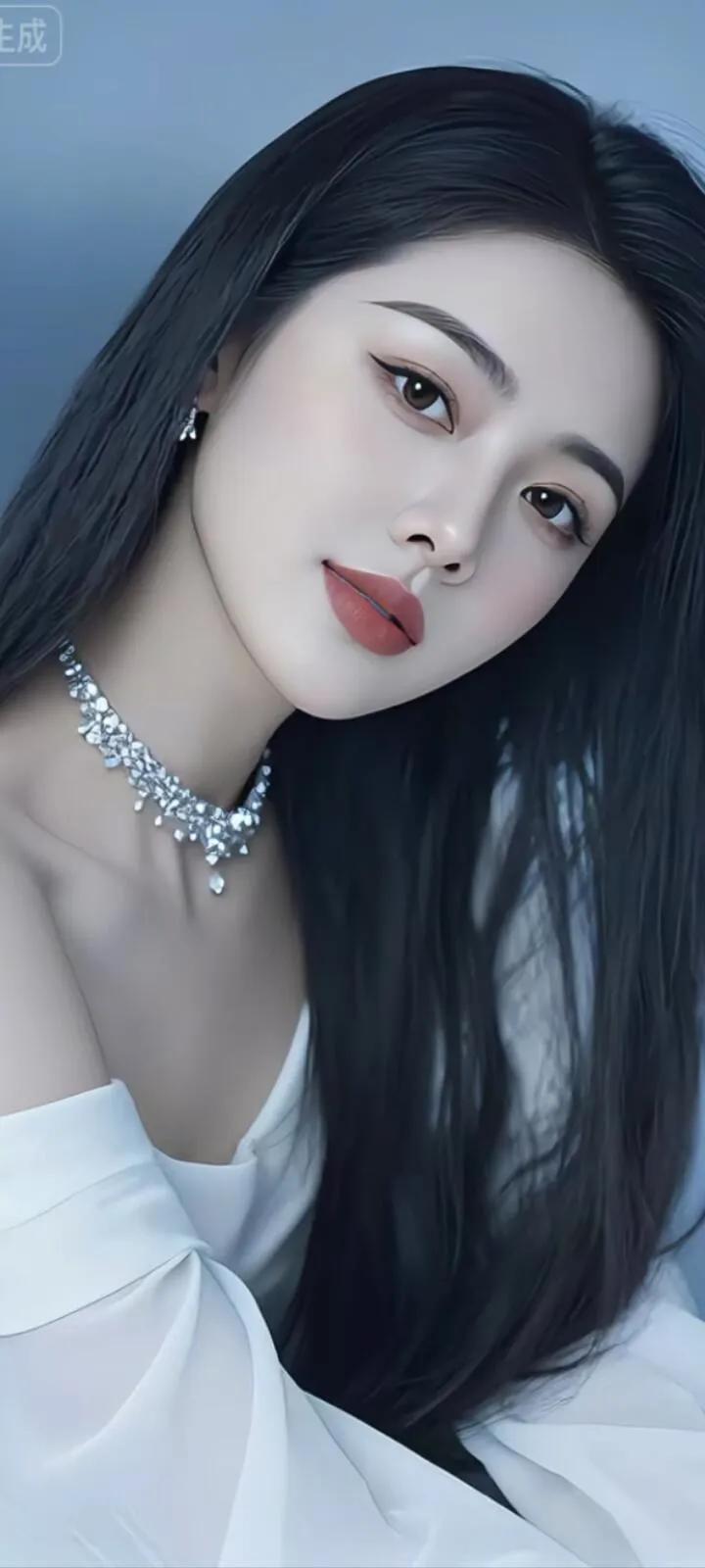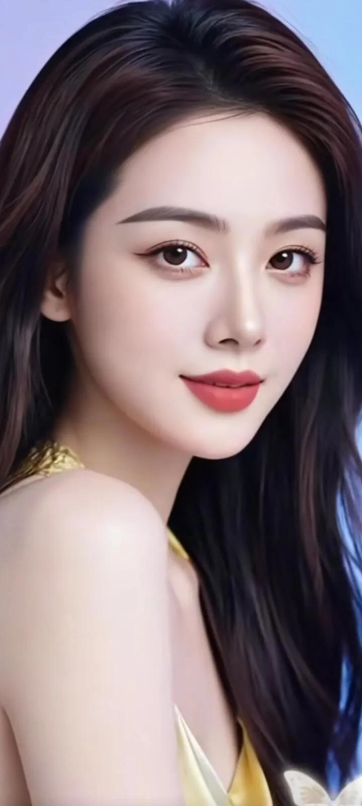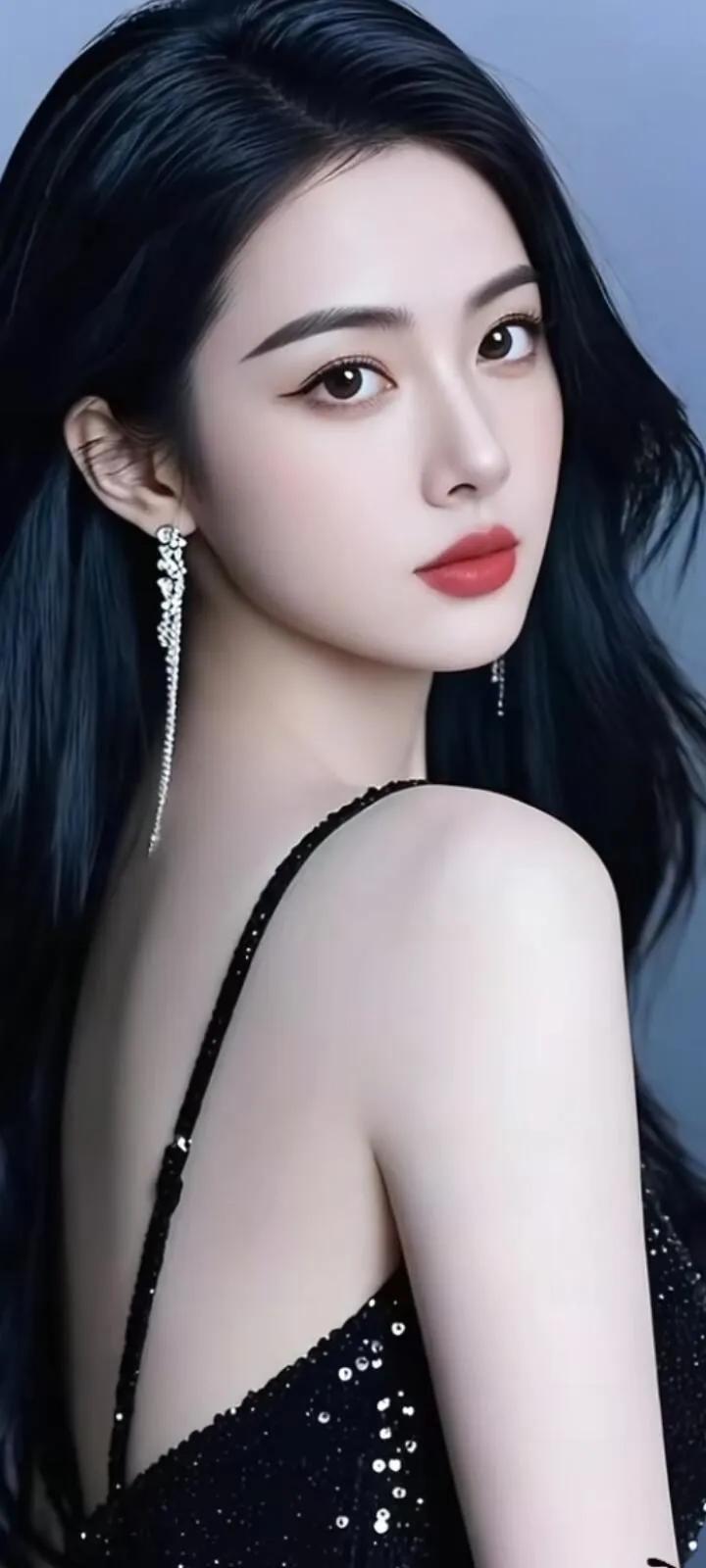 温柔眼波流转,黑发如瀑,红唇轻启,优雅动人。