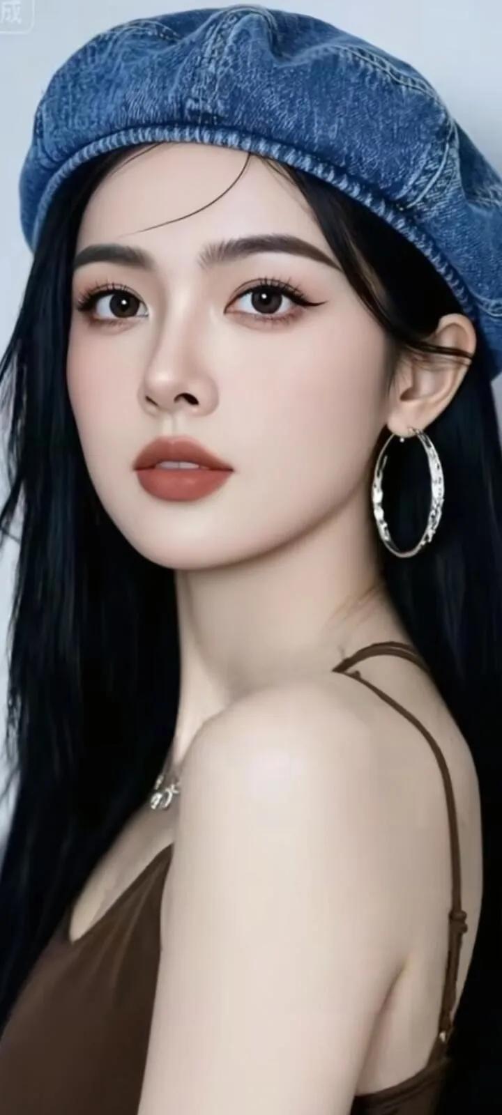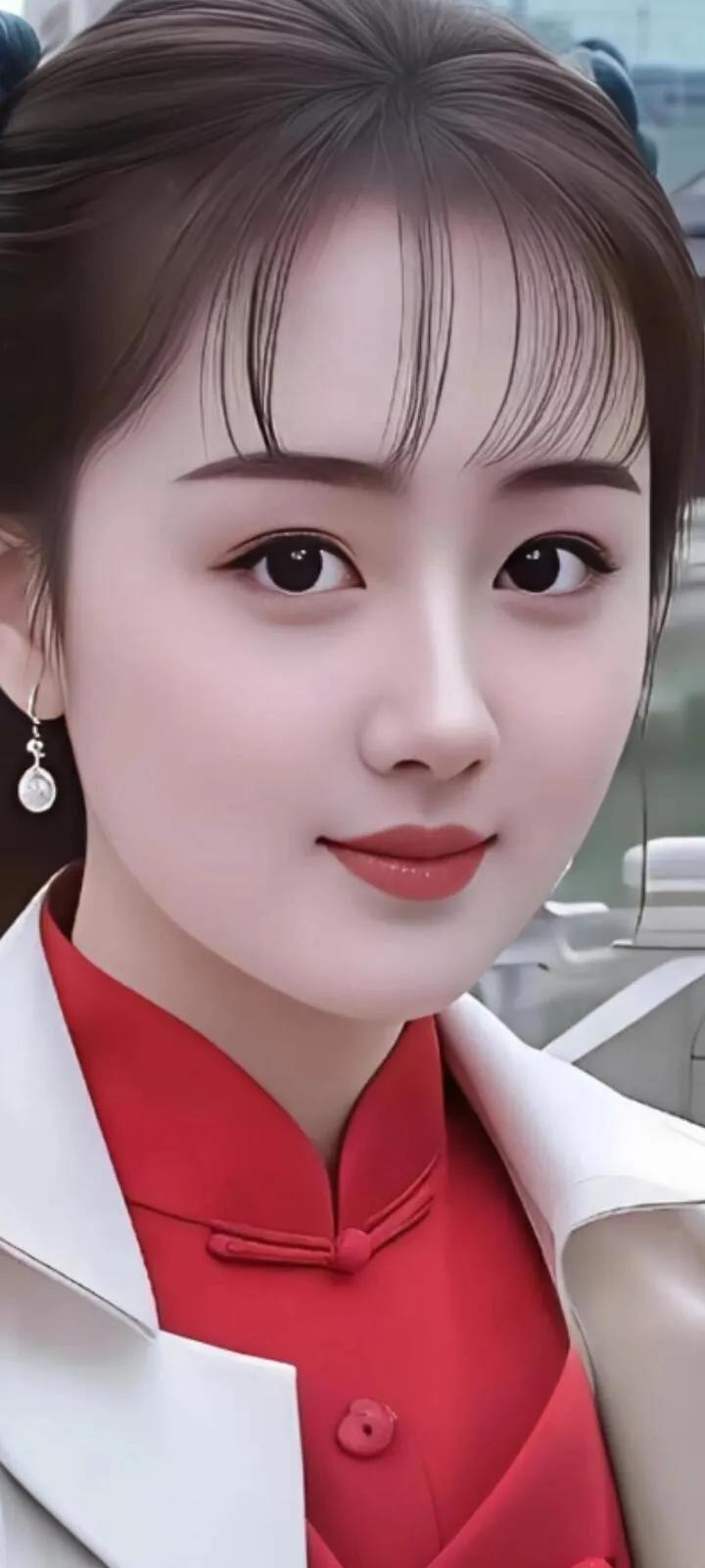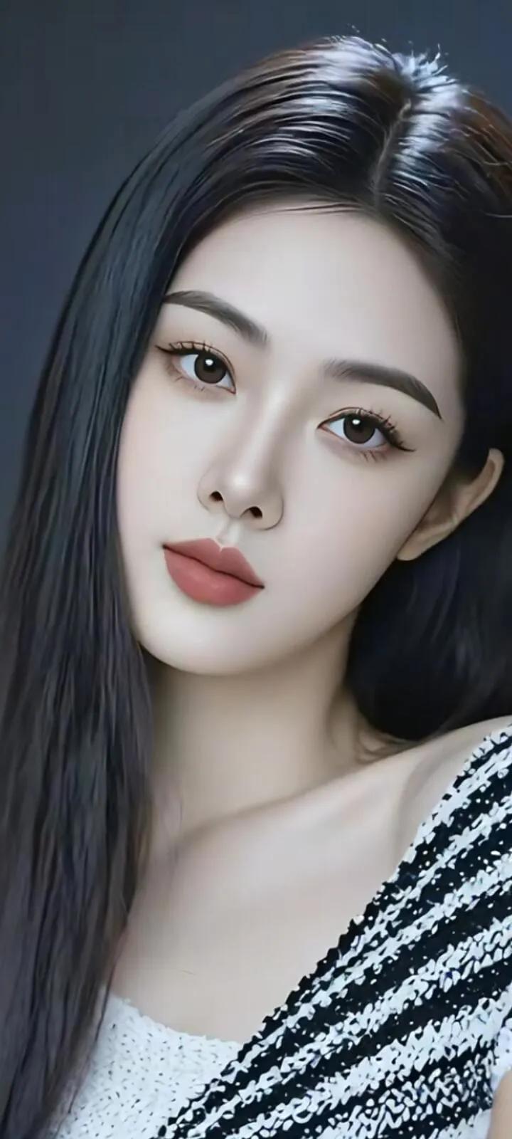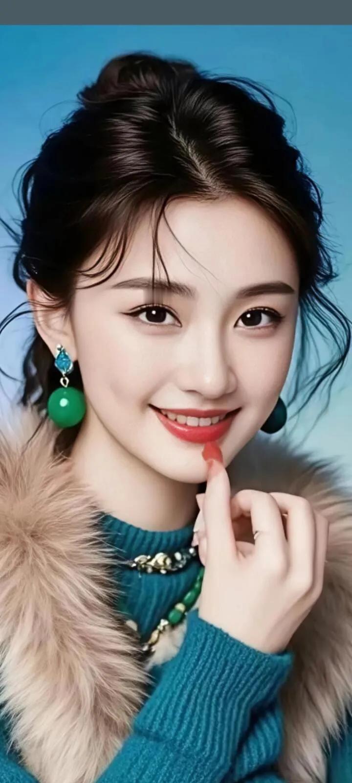 温柔眼波流转,黑发如瀑,红唇轻启,优雅动人。