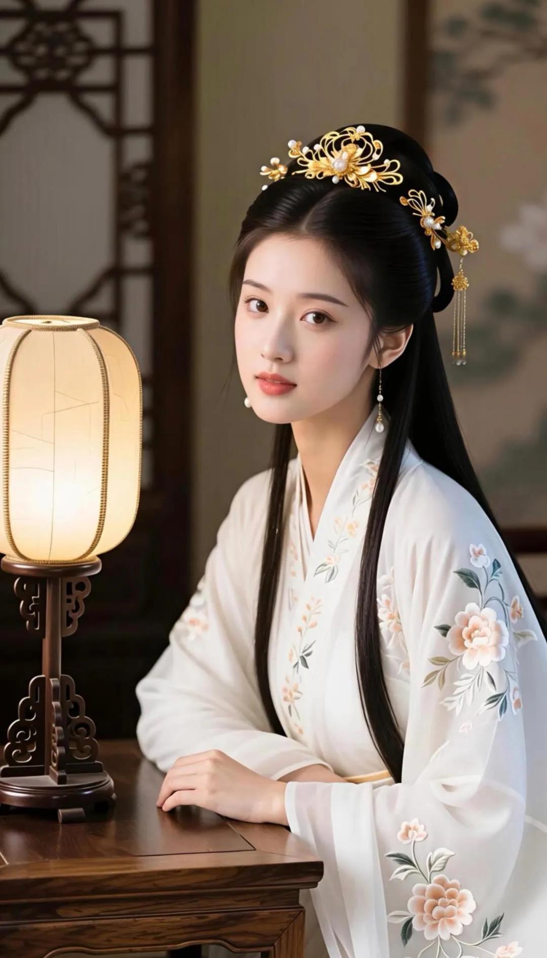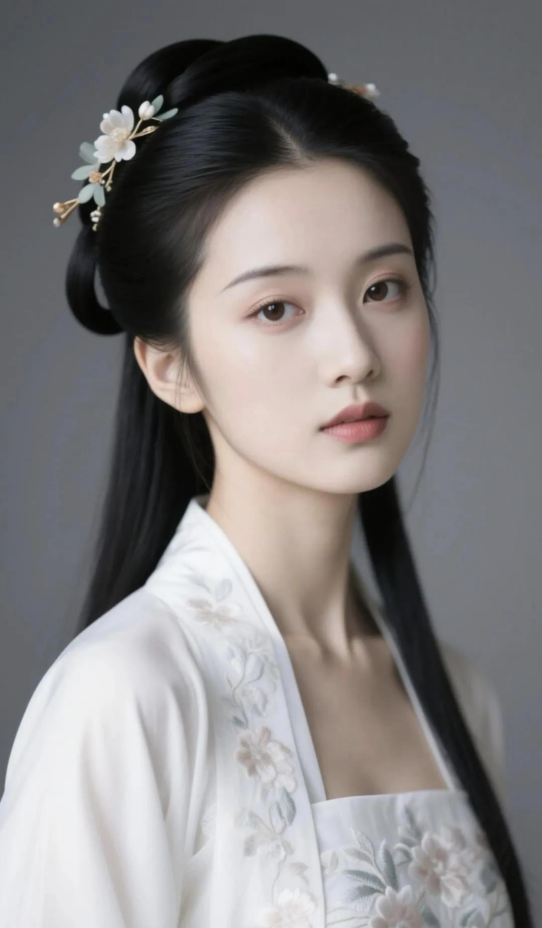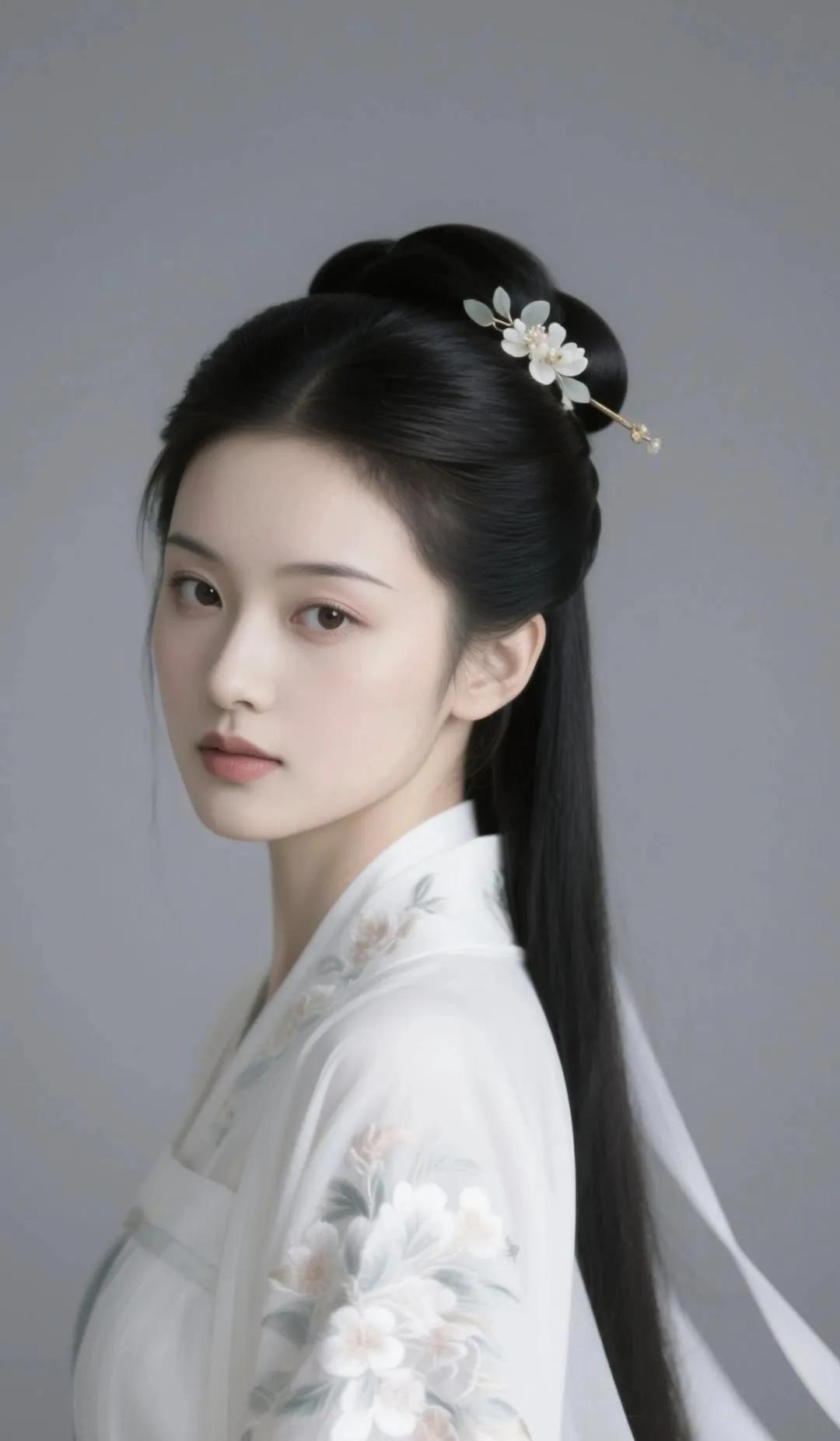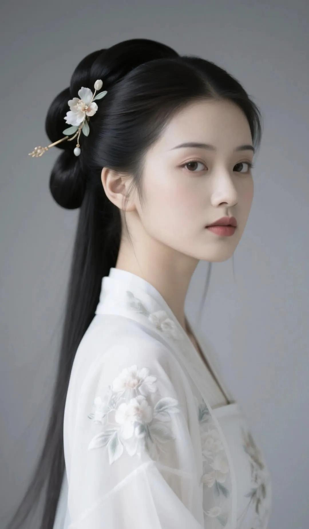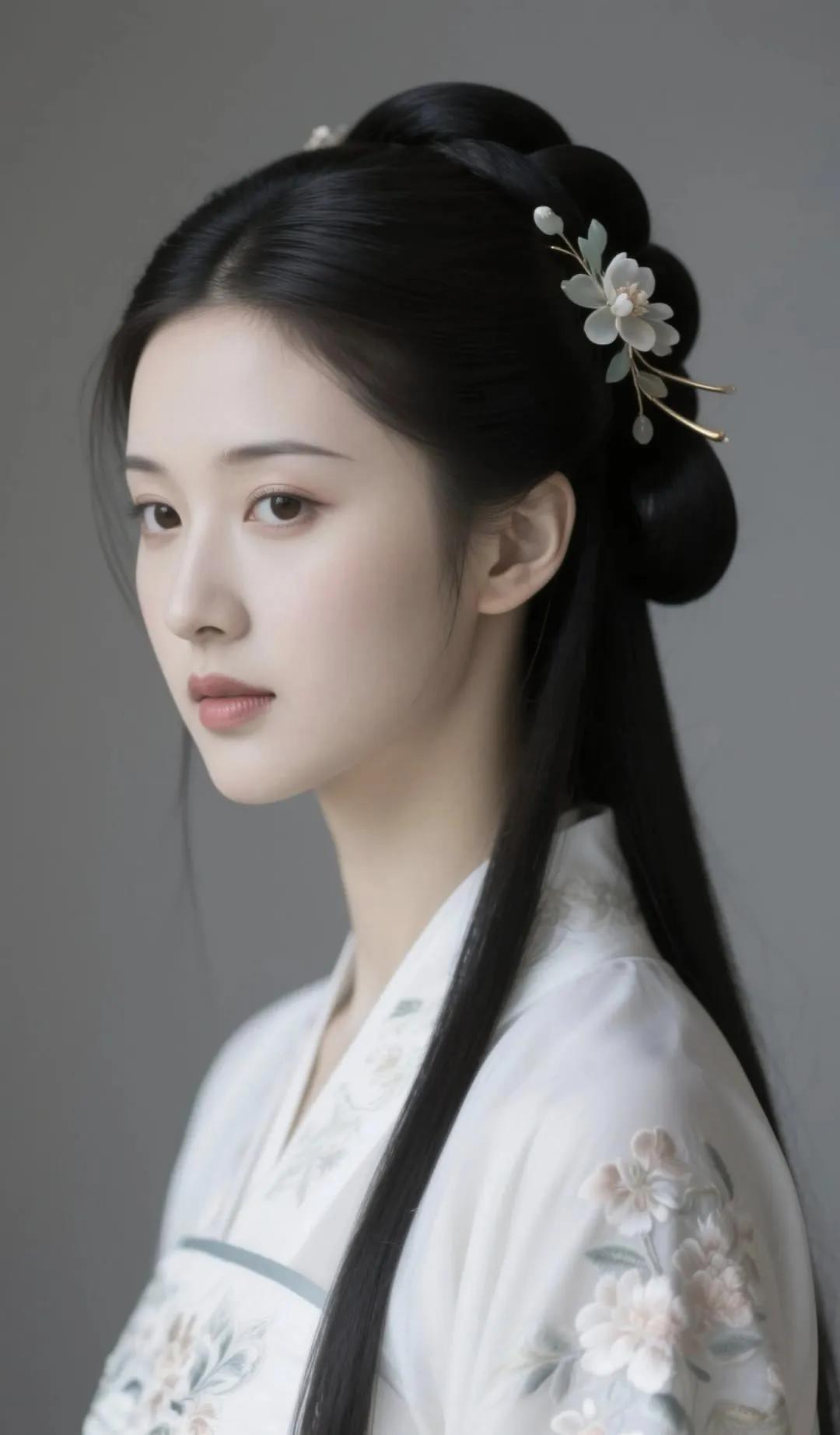 古典美人,花簪垂耳,蓝衣映花,韵味十足。