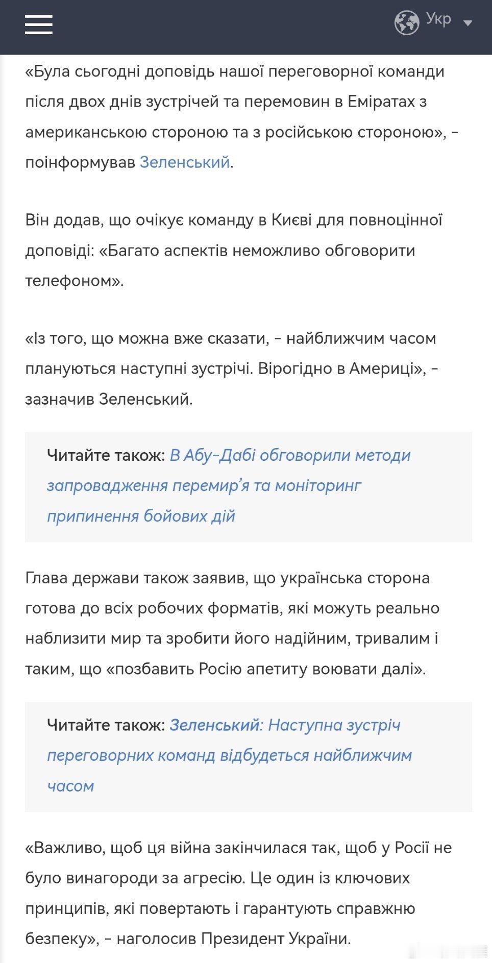“重要的是,这场战争必须以这样的方式结束:俄罗斯不能因**行为而获得任何回报。这是恢复和保障真正安全的关键原则之一。”乌克兰总统强调道。同时,他感谢了所有支持乌克兰的合作伙伴。(乌克兰在线新闻网)