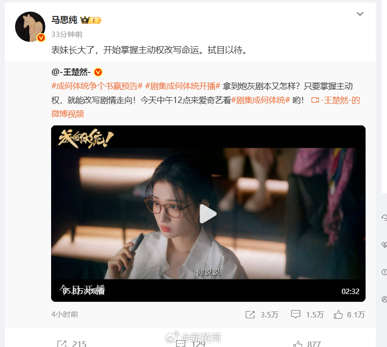 【#马思纯一声表妹梦回叶昭#】 #马思纯说表妹长大了# 今日, :新剧《成何体统》上线,转发微博,“表妹长大了,开始掌握主动权改写命运。拭目以待。”王楚然回复“谢谢最好的姐姐”。评论区也炸开了锅,“一生表妹,梦回叶昭”“期待二搭”。2017年,《将军在上》开播,王楚然在剧中饰演马思纯的表妹,这也是她个人首部电视剧,从而正式进入演艺圈。( 杜鹃)