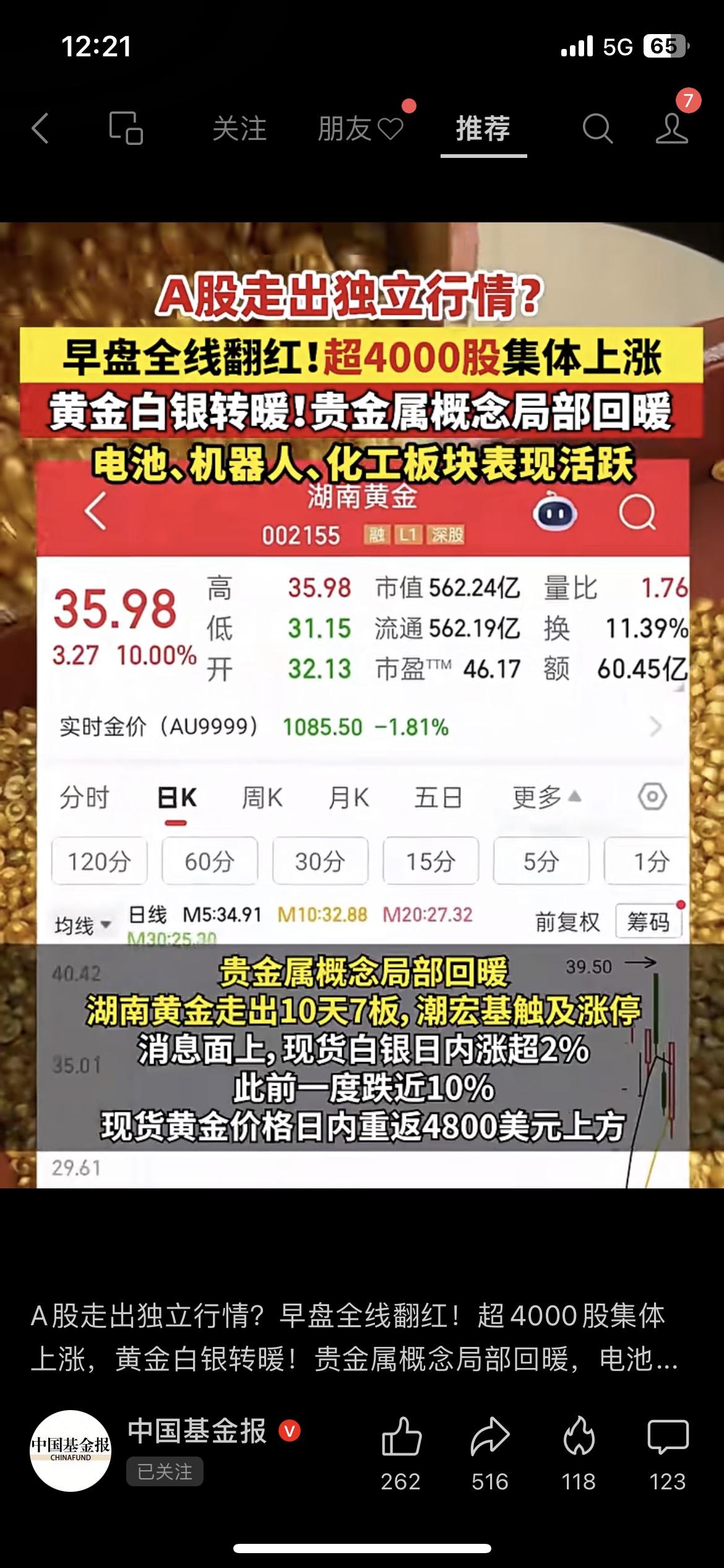 A股爆拉!超4000股集体翻红,这波独立行情要来了? 早盘三大指数低开高走,沪指、深成指双双翻红,超4000只股票上涨,成交额破万亿!贵金属、化工、机器人板块集体爆发,湖南黄金10天7板,白银日内涨超2%,这波回暖太给劲儿了! A股不跟跌,独立行情藏着咱们普通人的赚钱机会! 你会加仓布局,还是先观望等企稳? A股行情 贵金属 财经热点 股市 (市场有风险,投资需谨慎)A股指数 A股行情