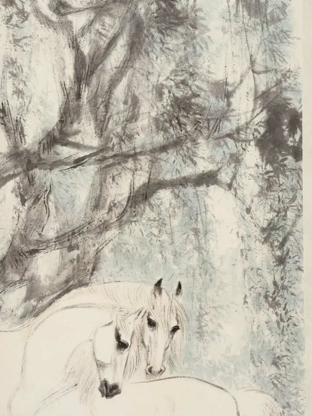 刘旦宅《柳荫双骏》,设色纸本 91.5×68 cm。题识:辛酉新秋,刘旦宅作于沪