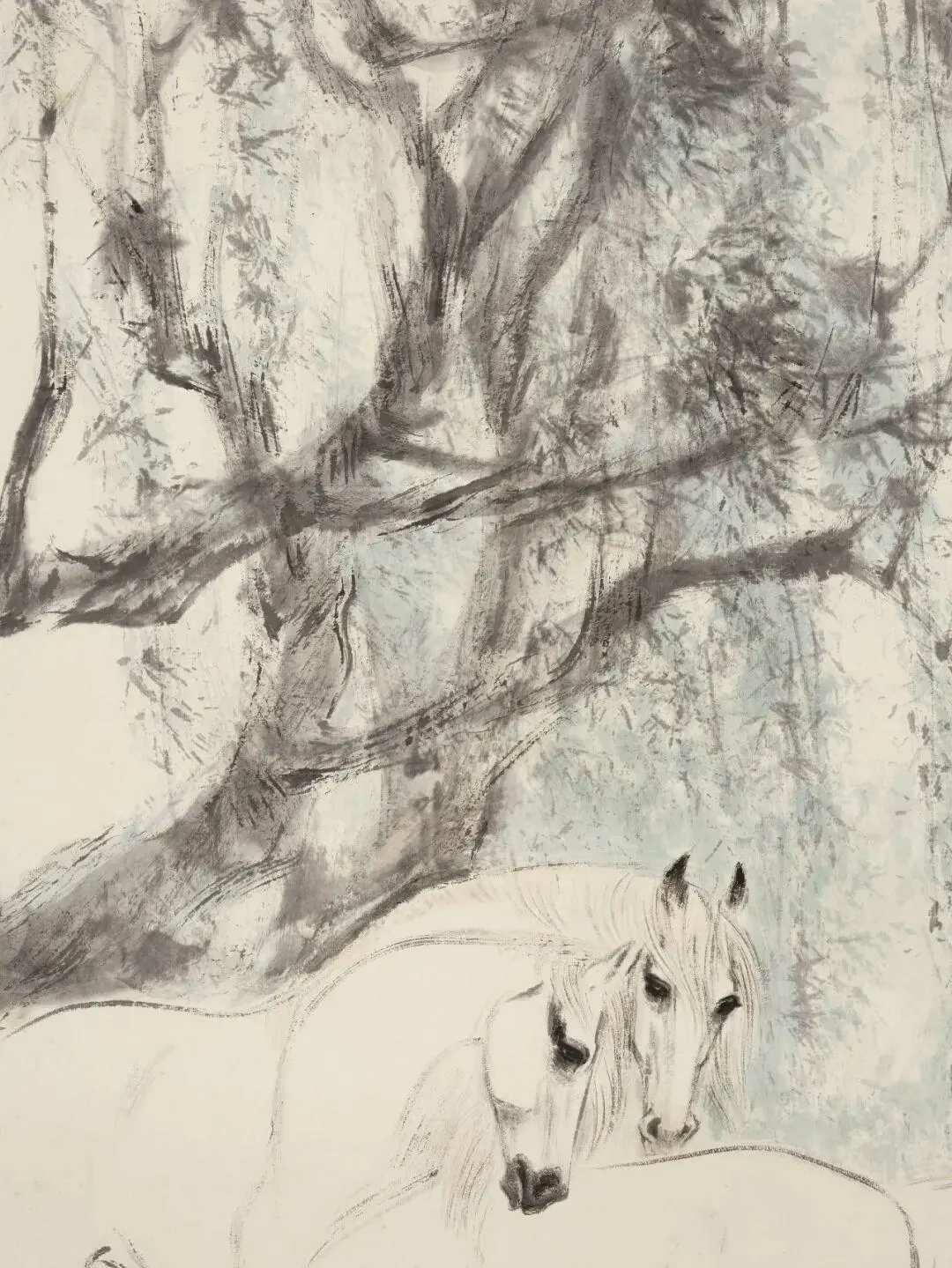 刘旦宅《柳荫双骏》,设色纸本 91.5×68 cm。题识:辛酉新秋,刘旦宅作于沪上。钤印:刘浑、旦宅、瓯越人。自题签:双骏图。一九八一年十二月,旦宅。这就是中国风遇见艺术