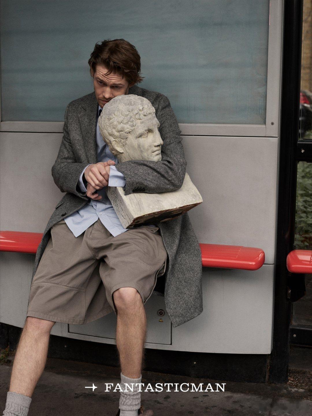 羊毛大衣裹着石膏像静坐长椅,古典与街头在风里碰杯,时间也为这荒诞驻足。粉毛衣配领结的绅士扯着袖口,像要把春日的甜拽进镜头,每个褶皱都在讲秘密。FantasticManJoeAlwyn封面