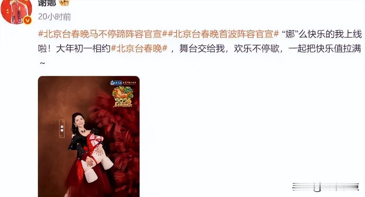 谢娜官宣春晚和演唱会,综艺女王要唱歌?她到底想干啥。 2月4号那天,谢娜一下说了两件事:一个是上北京台春晚,跟大张伟一块演;另一个是2027年要开个人演唱会。消息出来后,朋友圈、微博、短视频平台都在刷,但很多人其实只记住“她要唱歌了”,没注意她是怎么一步步走到这的。 她早不是《快乐大本营》里那个只会蹦跳喊口号的谢娜了。这几年她主持过央视秋晚,跟新闻主播任鲁豫搭档,说话慢了、稳了;也去过《乘风破浪》,不是玩票,是真练唱跳;还录过三张专辑,《菠萝菠萝蜜》《娜写年华》《蓝色巧克力》,歌不是随便写的,词曲版权都在她自己名下。 北京台春晚这次选她,不是因为“怀旧”,是因为她真能接住“胡同大爷大妈”和“刷短视频的年轻人”两边的话茬。和大张伟搭,也不是炒冷饭,是两个人都擅长在搞笑里埋点现实感,《阳光彩虹小白马》听着闹,其实讲的是普通人硬扛生活那股劲儿。 演唱会更不是临时起意。团队早就在动了,音乐总监是金少刚,制作方是张杰背后的行星文化,连声场设计、灯光节奏都按专业演唱会标准来。她说“票房好就加场”,看着像开玩笑,其实是把粉丝反馈当试金石——先小范围跑通流程,再决定后面怎么走。 张杰没上台帮唱,但他的经验全用在幕后。谢娜直播清唱《娜写年华》那段,弹幕全是“DNA动了”,可你细听,她的气息、停顿、轻重,跟六年前明显不一样。这不是靠剪辑凑出来的效果,是实打实练出来的。 她和张杰也没刻意“同框”。他1月底在成都开唱,她2月初才官宣,两边时间错得刚好。不是不想一起上,是各忙各的活儿,谁也不耽误谁,也不抢谁的风头。 有人说她转型太晚,其实她没转,是原来那个“爱闹腾的主持人”一直在悄悄补课。写歌、排练、研究观众怎么笑才不尴尬、怎么唱才不费力——这些事没镜头,也没热搜。 谢娜这次没说大话,也没喊口号。她就是把能做的提前做了,该练的练了,该谈的合作也谈妥了。别的事,等开唱那天再说。 谢娜回归春晚舞台,综艺女王真要开唱?她准备好了吗。