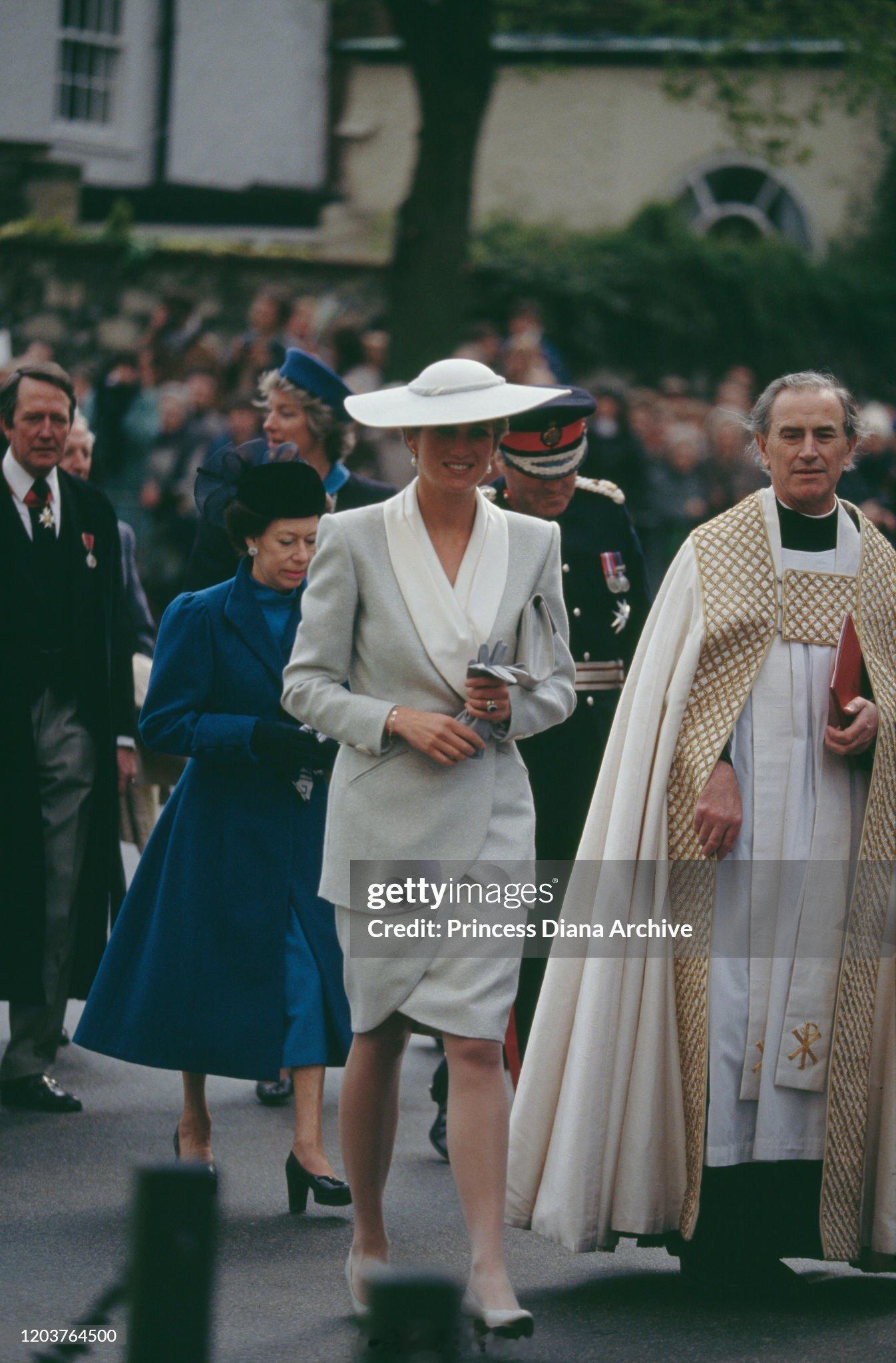 1991年4月19日,威尔士戴安娜王储妃和斯诺登第一代伯爵夫人玛格丽特公主在坎特伯雷大教堂参加第1️⃣0️⃣3️⃣任坎特伯雷大主教George Carey的主教就职典礼。