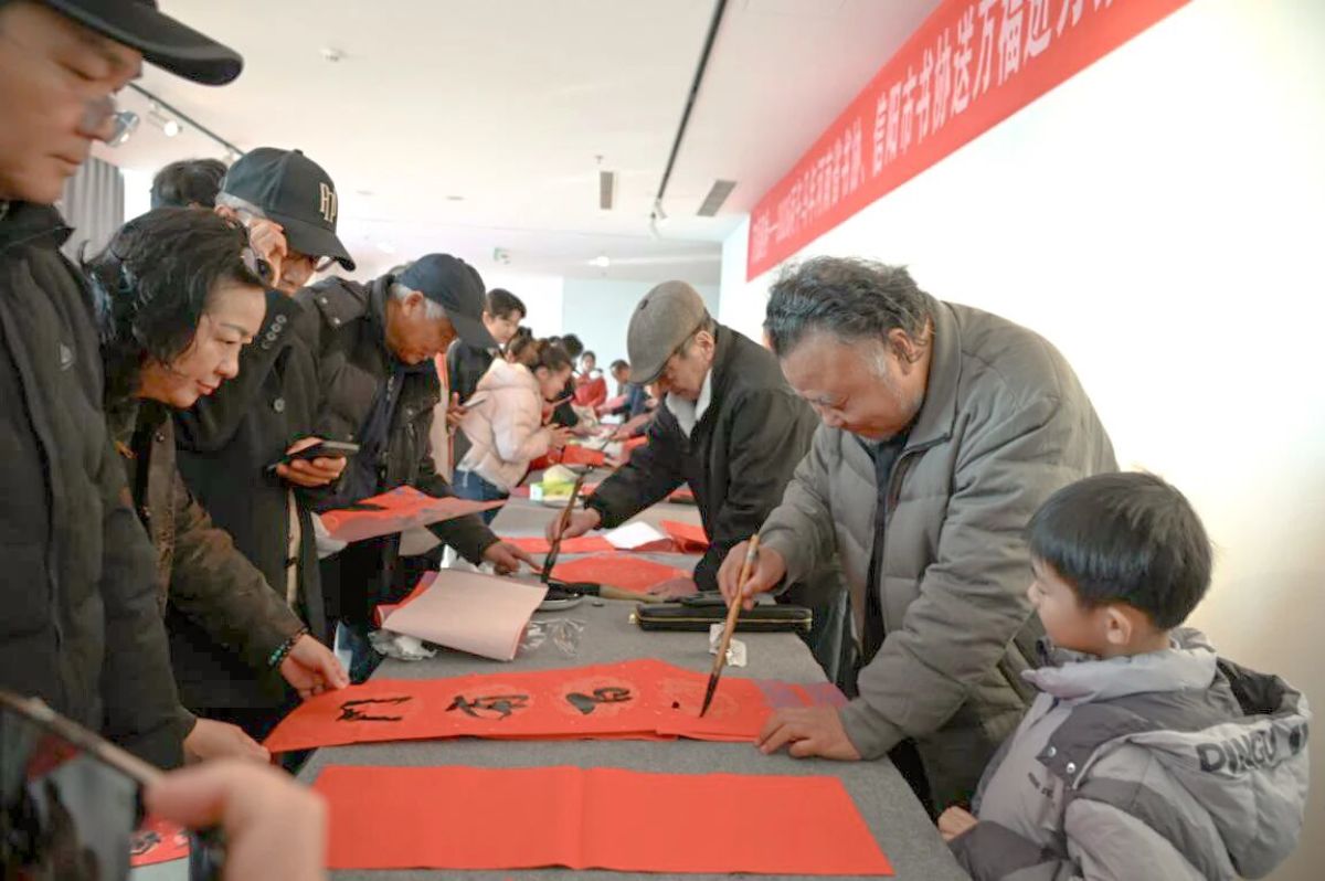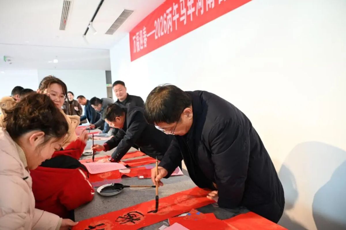 展览开幕前还举办了“万福迎春”——2026丙午马年河南省书协、信阳市书协送福进万家公益活动。活动现场,省、市书法名家全神贯注,或笔走龙蛇,或行云流水,将一幅幅充满新春祝福的春联和“福”字赠予市民群众,为即将到来的春节增添了浓厚的文化氛围。