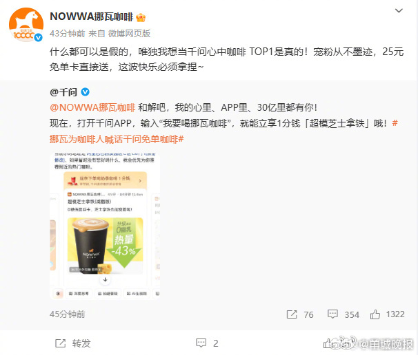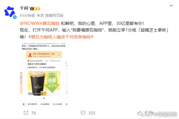 千问免费咖啡谁喝上了啊,都在分享链接谁喝上了啊???挪瓦为咖啡人喊话千问免单咖啡