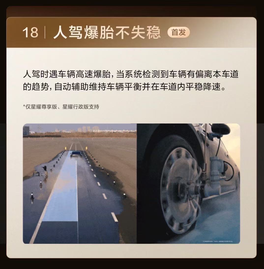 在底盘方面最近 S800 也有全新的OTA升级,首发了「人驾爆胎不失稳」和「悬架预瞄防刮底」技术。