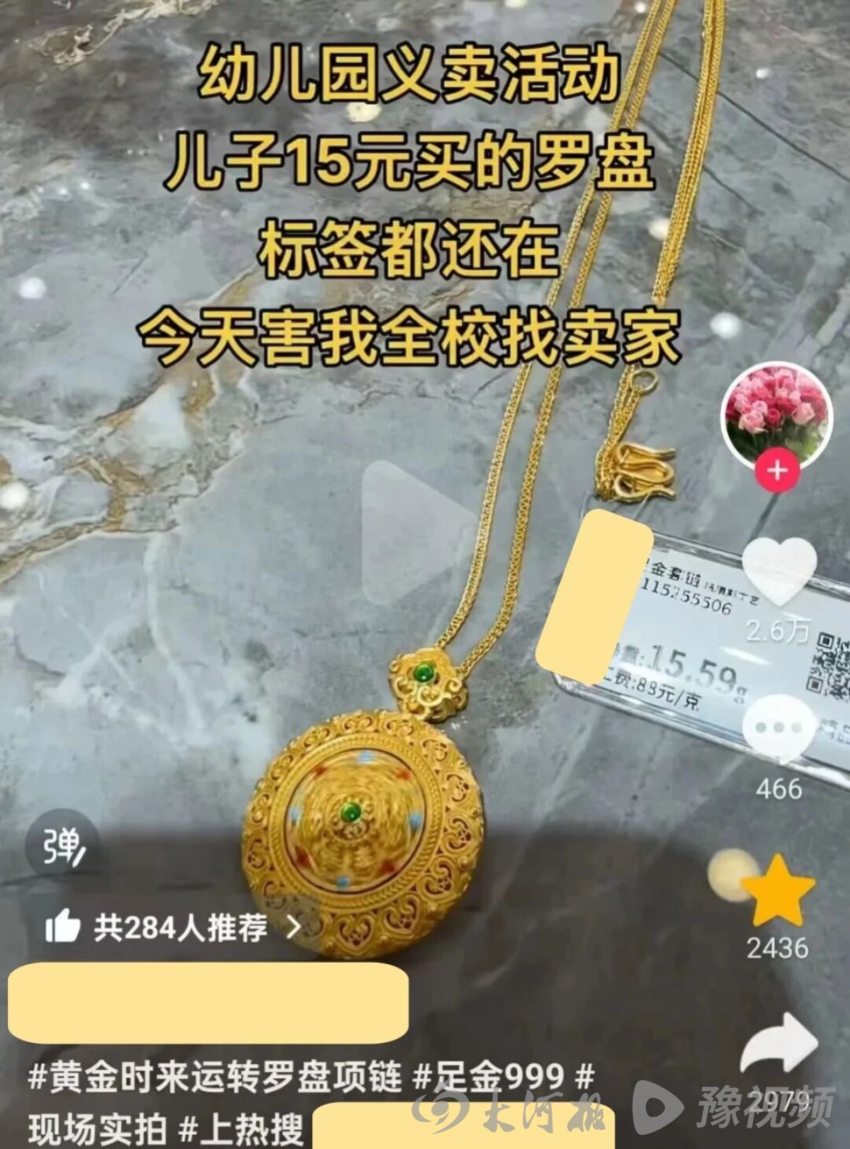近日,“幼儿园义卖现场惊现黄金首饰”的短视频在某平台引发热议,这引起了信阳市公安局浉河公安分局网安大队民警的关注。视频中,网友声称孩子在幼儿园义卖活动中,仅花10元就买到了一条重10.65克的知名品牌黄金项链,配图里的项链还带着完整商品标签,看似真实可信。