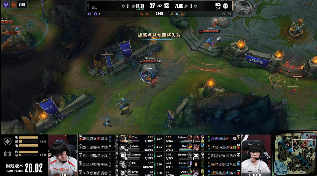 39分钟,WBG领先一万五经济但难以推进,Photic绝境三杀IG拿下大龙