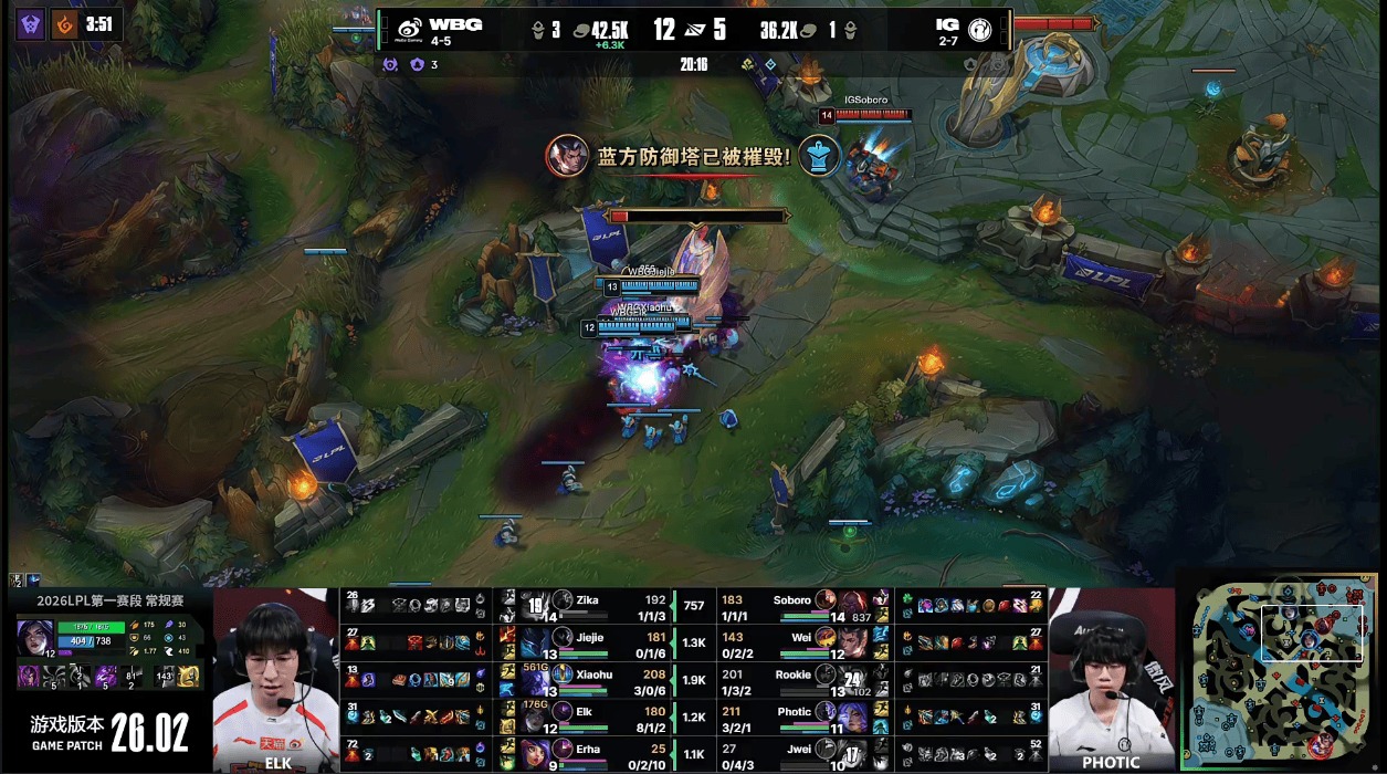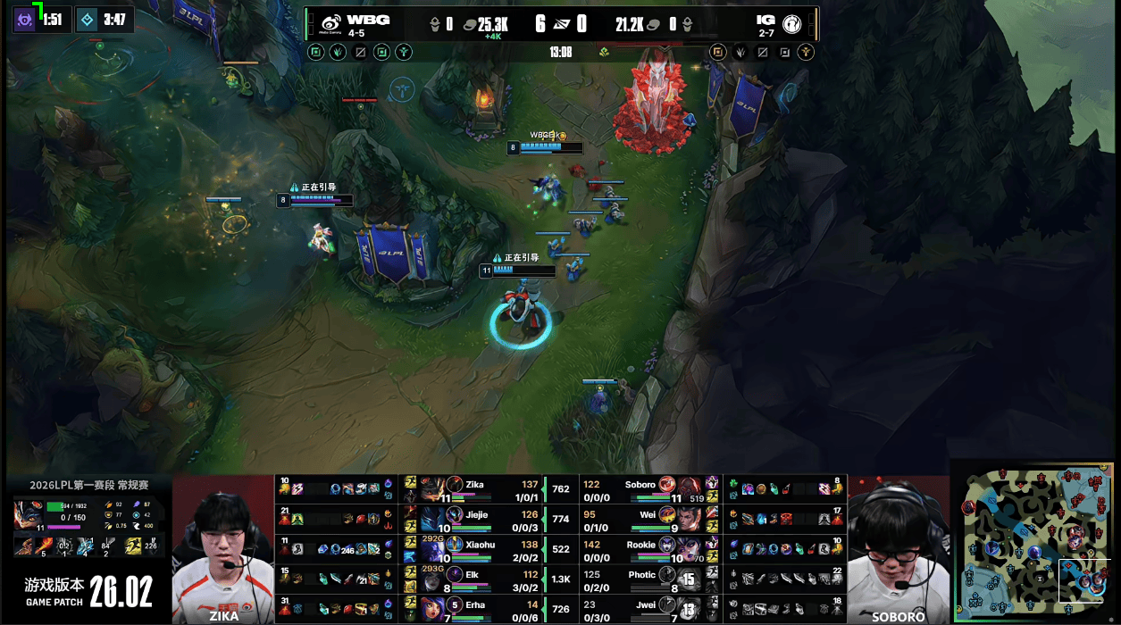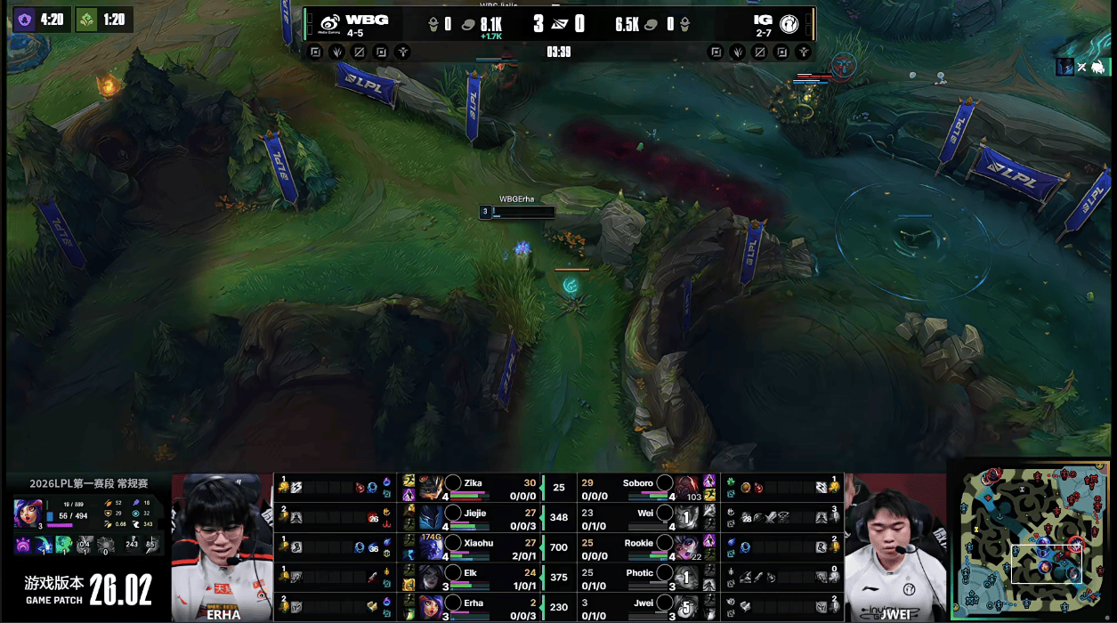 虎扑02月06日讯GAME1:WBG蓝色方;IG红色方