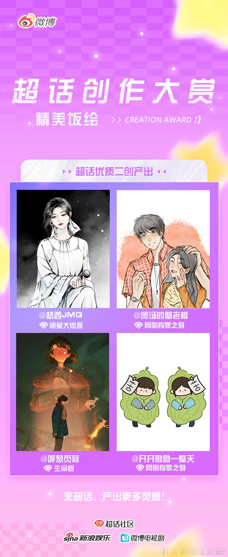 快来欣赏超话创作官们的精彩作品吧~【精美饭绘】明星大侦探 网剧有罪之身 生命树 网剧有罪之身 爱情怎么翻译 炽热吸引 生命树 网剧有罪之身 电视剧小城大事 剧集骄阳似我 电视剧轧戏 玉茗茶骨