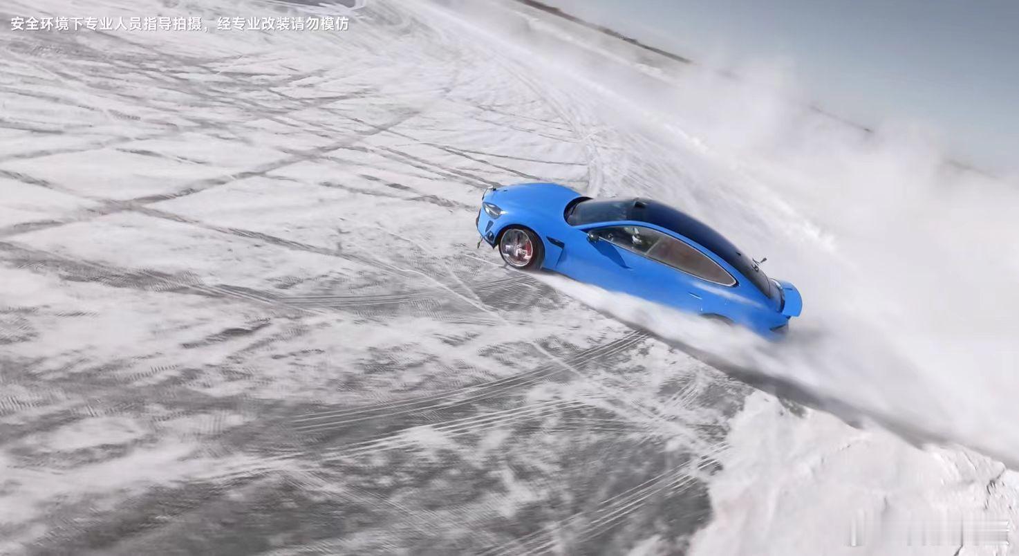 虽然很炫,但可不是为了炫技,能看出来这车的机械素质和电控水平很顶。电动车扭矩大,在冰雪这种低附着力路面上,很容易一脚电门就原地打转或者失控。