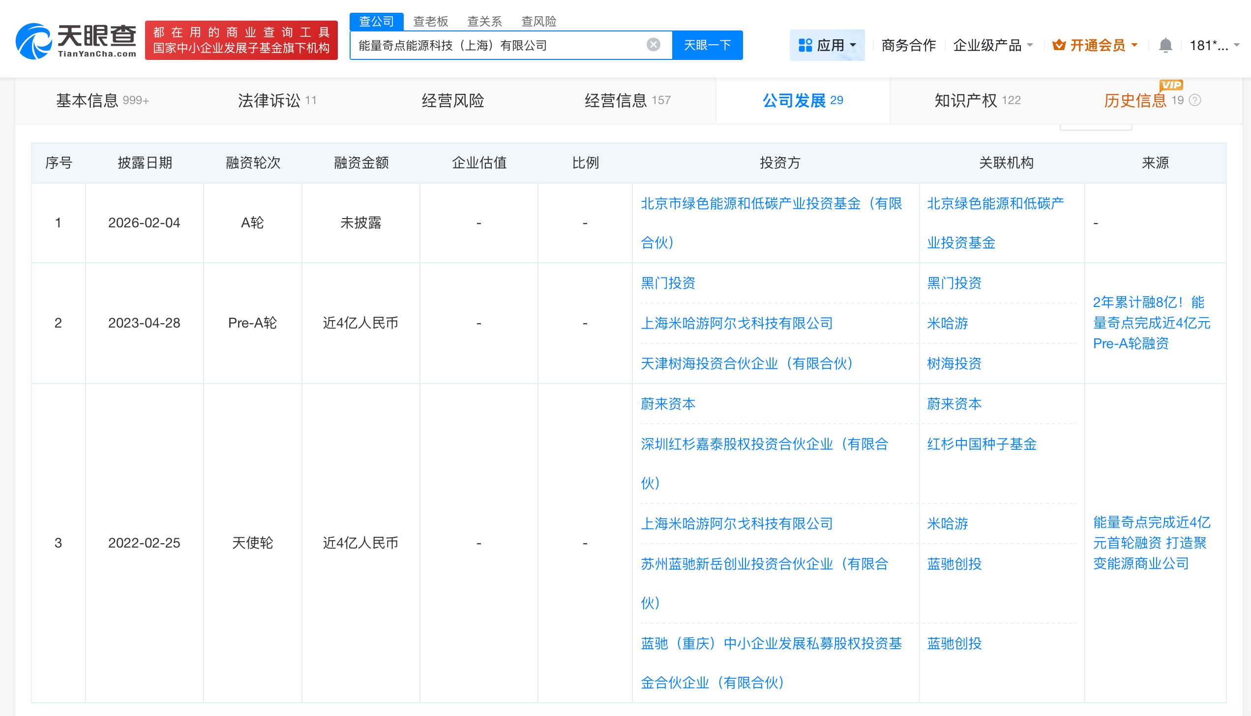 天眼查信息显示,能量奇点在A轮融资前还分别历经2022年近4亿元天使轮融资和2023年近4亿元Pre-A轮融资,投资方包括米哈游、蔚来资本、红杉中国种子基金等。