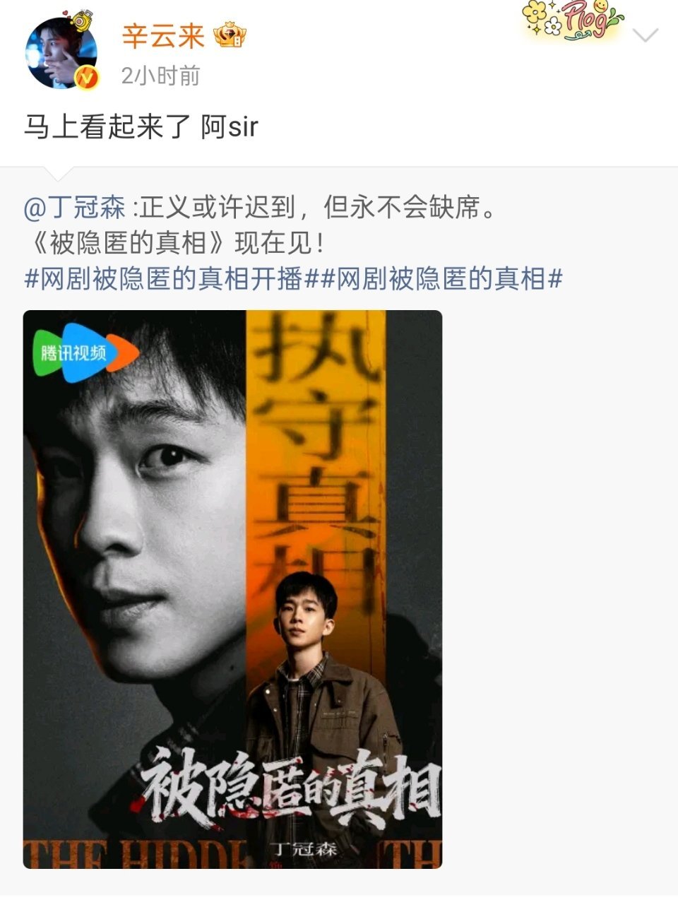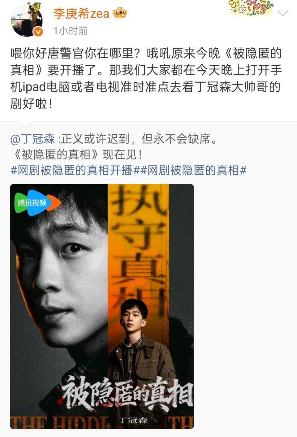 丁冠森的人脉丁冠森内娱人脉 丁冠森主演的新剧《被隐匿的真相》今日开播,白敬亭、辛云来、李庚希、任敏、杨旭文等都为他打call,内娱人脉这块没得说。