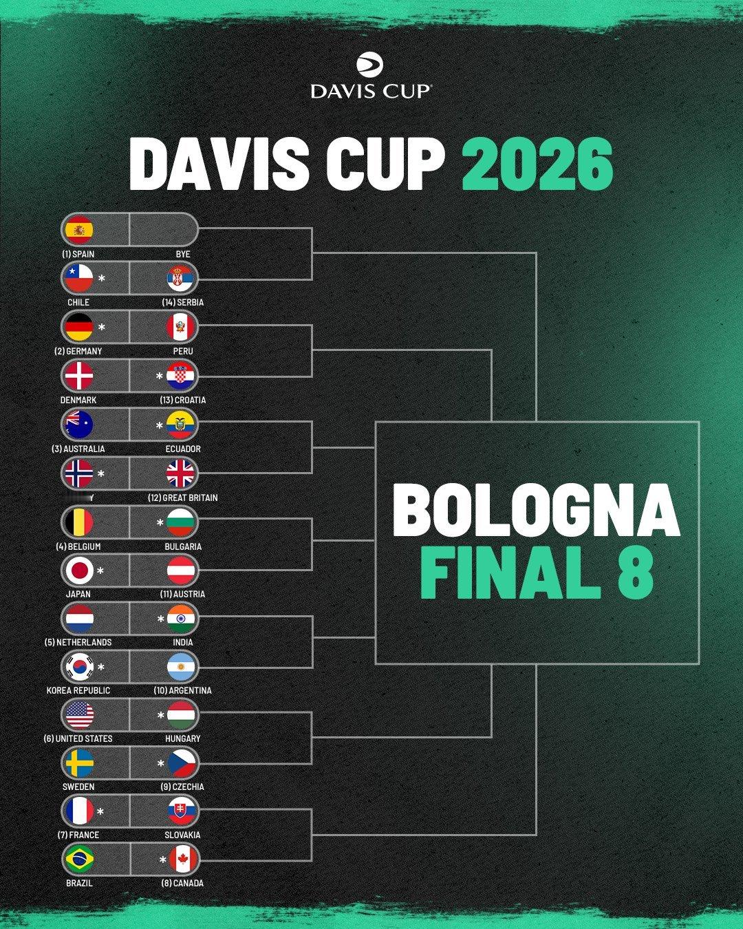 顺便来科普一下今年戴维斯杯世界组的对阵:
