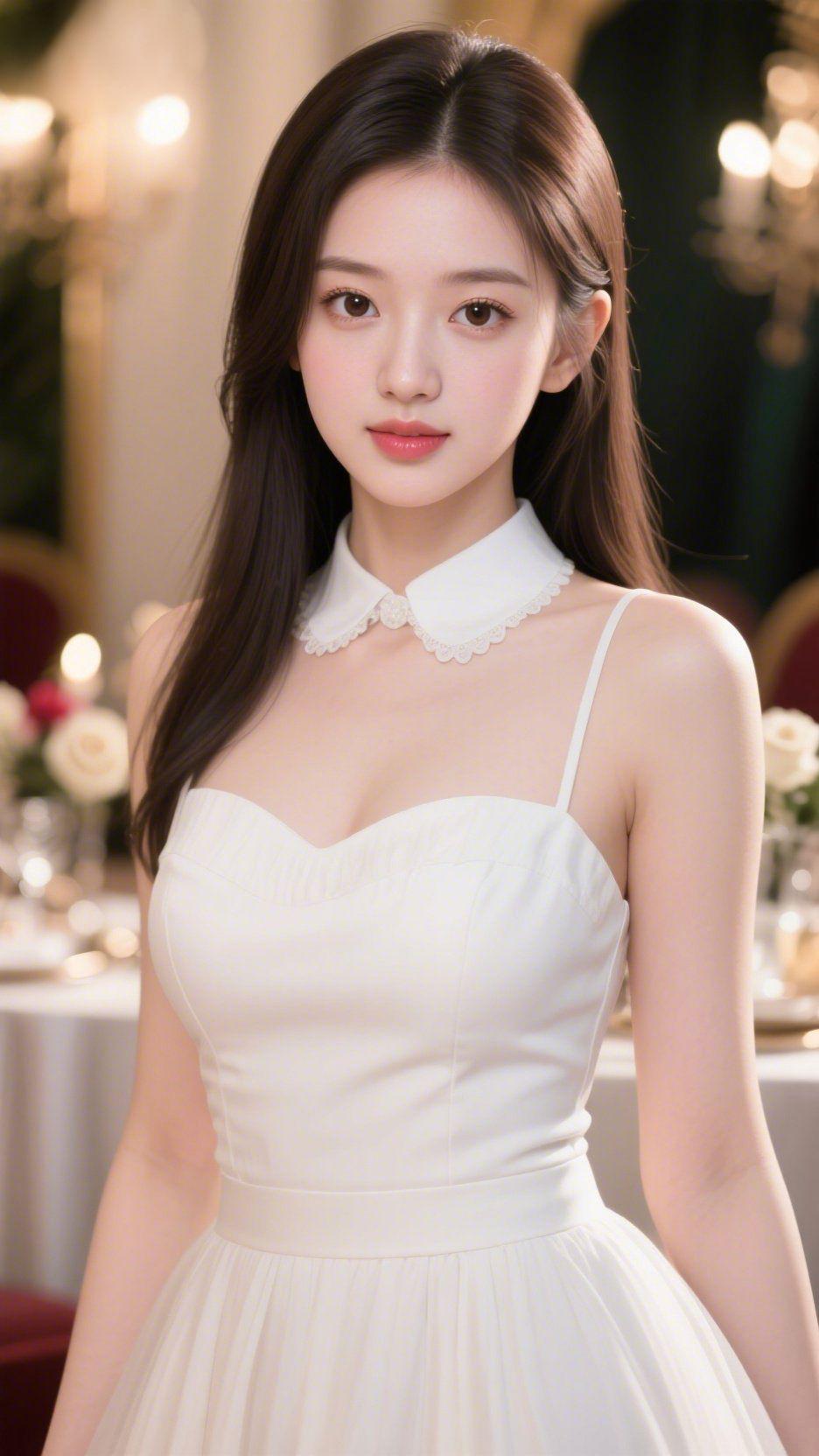 《白裙裹雅柔》 一袭白裙如月光轻落,精致蕾丝小翻领缀在颈间,衬得身形清润舒展。长发如墨垂落,眉眼澄澈得像浸了晨露,唇间漾着浅淡笑意,自带一份不沾尘俗的纯净。 暖光在身后轻洒,烛火与花影朦胧成温柔背景,她静静立着,像时光里妥帖收好的诗。这白不是寡淡,是浸了雅致的纯粹;这柔不是轻飘,是藏了沉静的暖意,在喧嚷里轻轻落定,让人心尖都裹了层软。 白裙雅柔感 清润气质