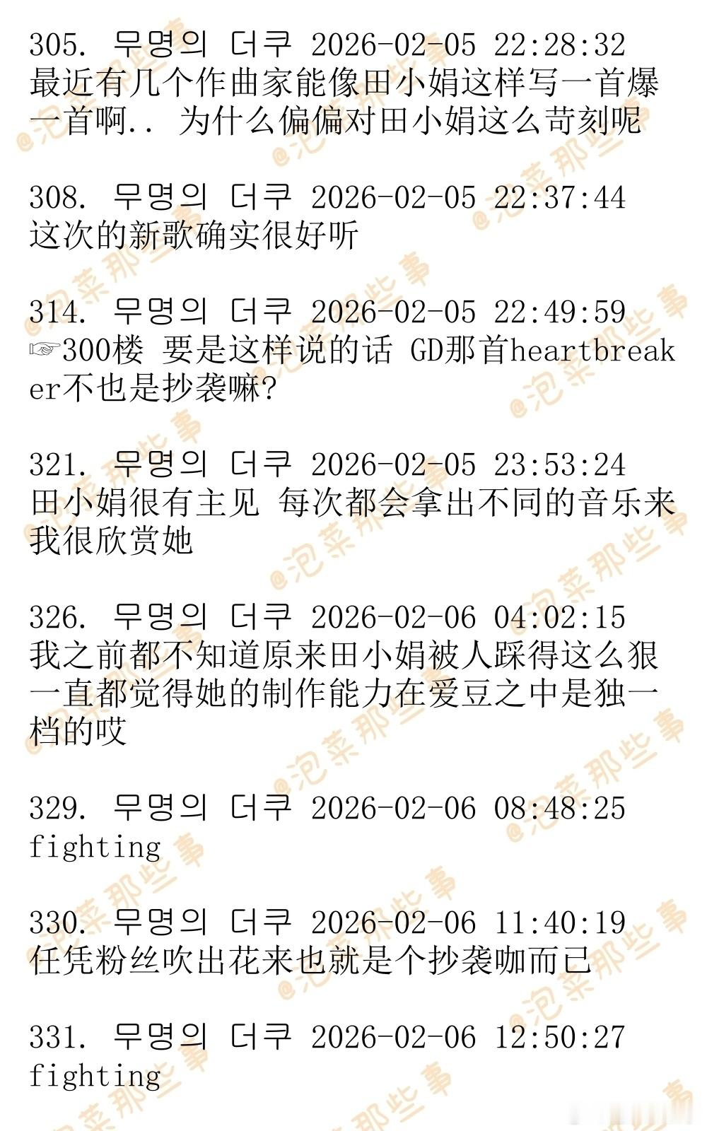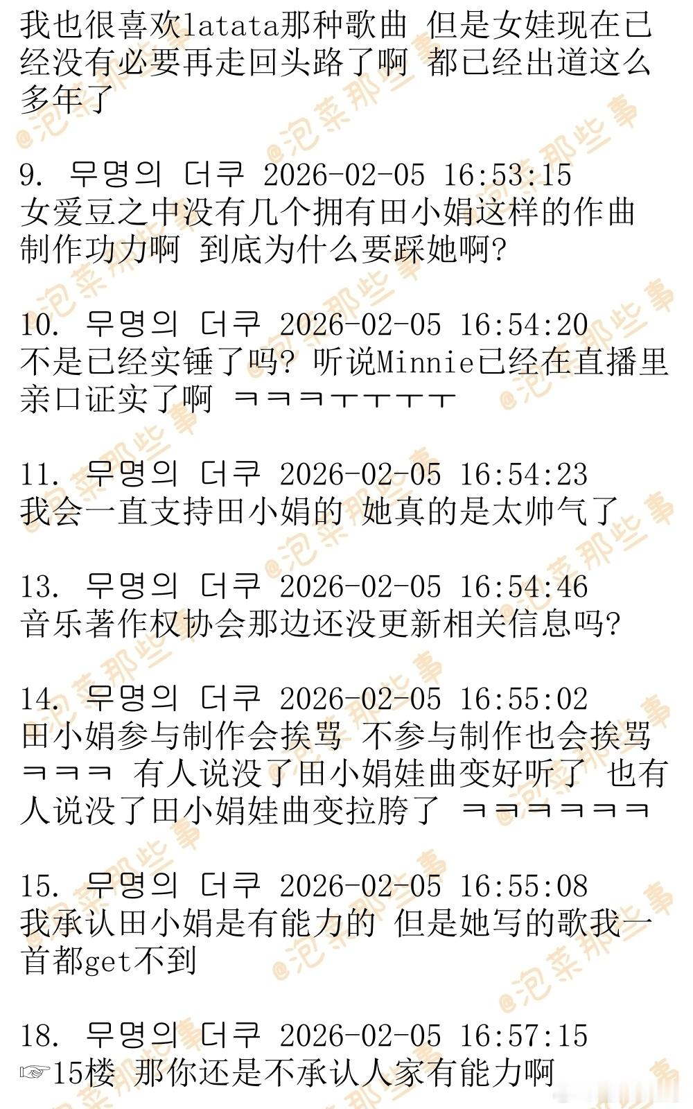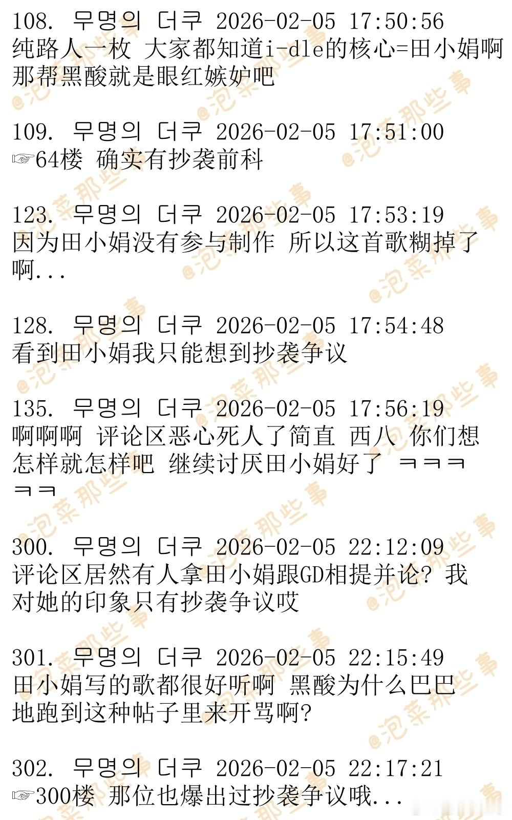 🔥韩网热帖评论翻译🔥田小娟没有出现在i-dle新歌Mono作曲人名单中的原因(推测)韩网原帖帖主称:这次i-dle新歌制作阵容里没有田小娟的名字 引发了诸多议论 粉丝们推测是田小娟故意隐藏了自己的名字 因为希望大家专注评价音乐本身고 这样看来 田小娟为组合制作歌曲真的是承受了巨大的压力啊 宁愿使用假名 也想要凭借音乐本身获得认可 ㅠㅠ 当然了 这位icebluerabbit也有可能是一位无名新人作曲家 但如果真的是田小娟的话 Mono这首歌蕴含的意义以及想要传达给大众的信息 真的是让人起了一身鸡皮疙瘩哎 总之 i-dle的Mono这首歌真的很好听 希望大家都去听一下 cr.theqoo