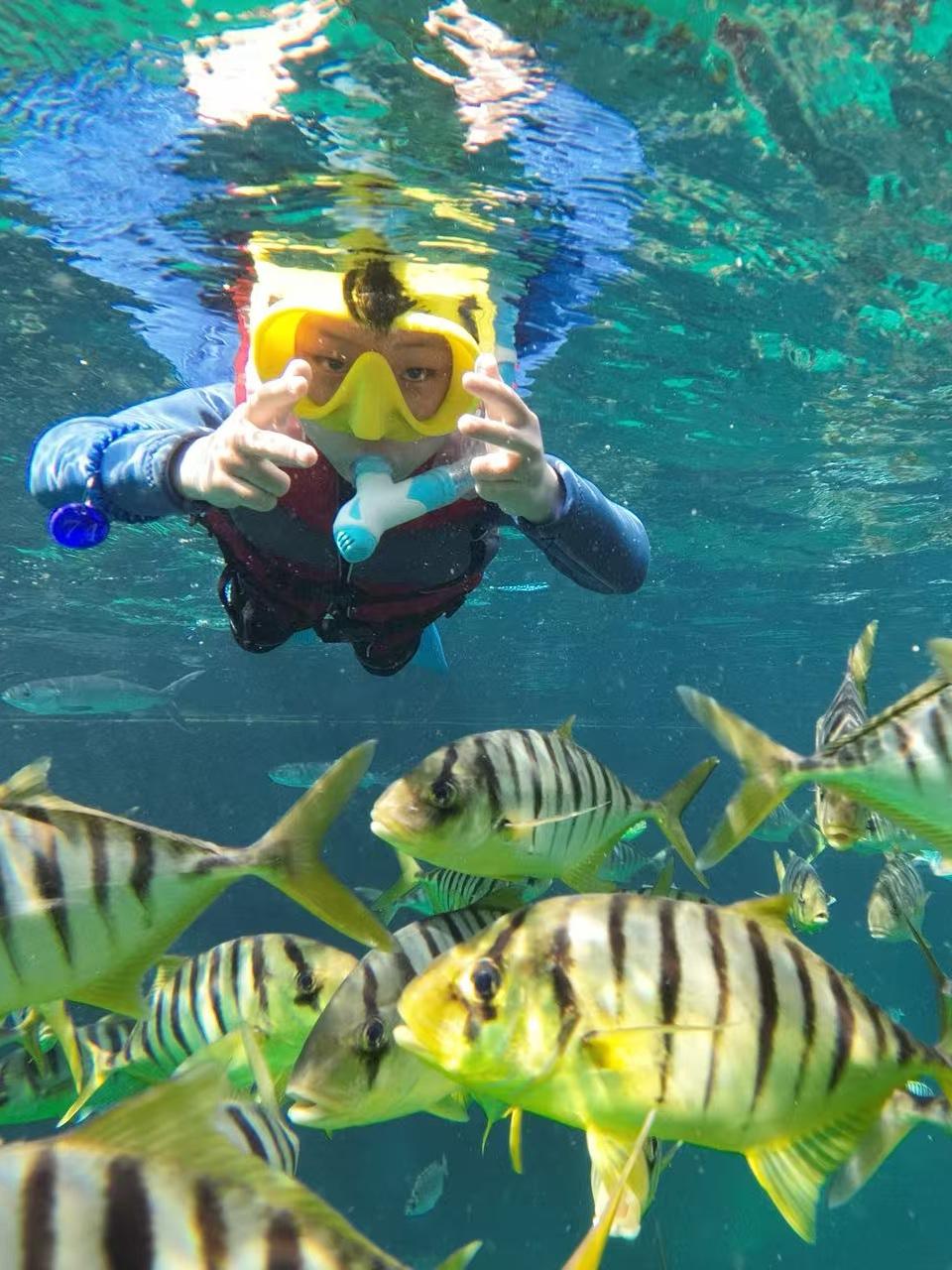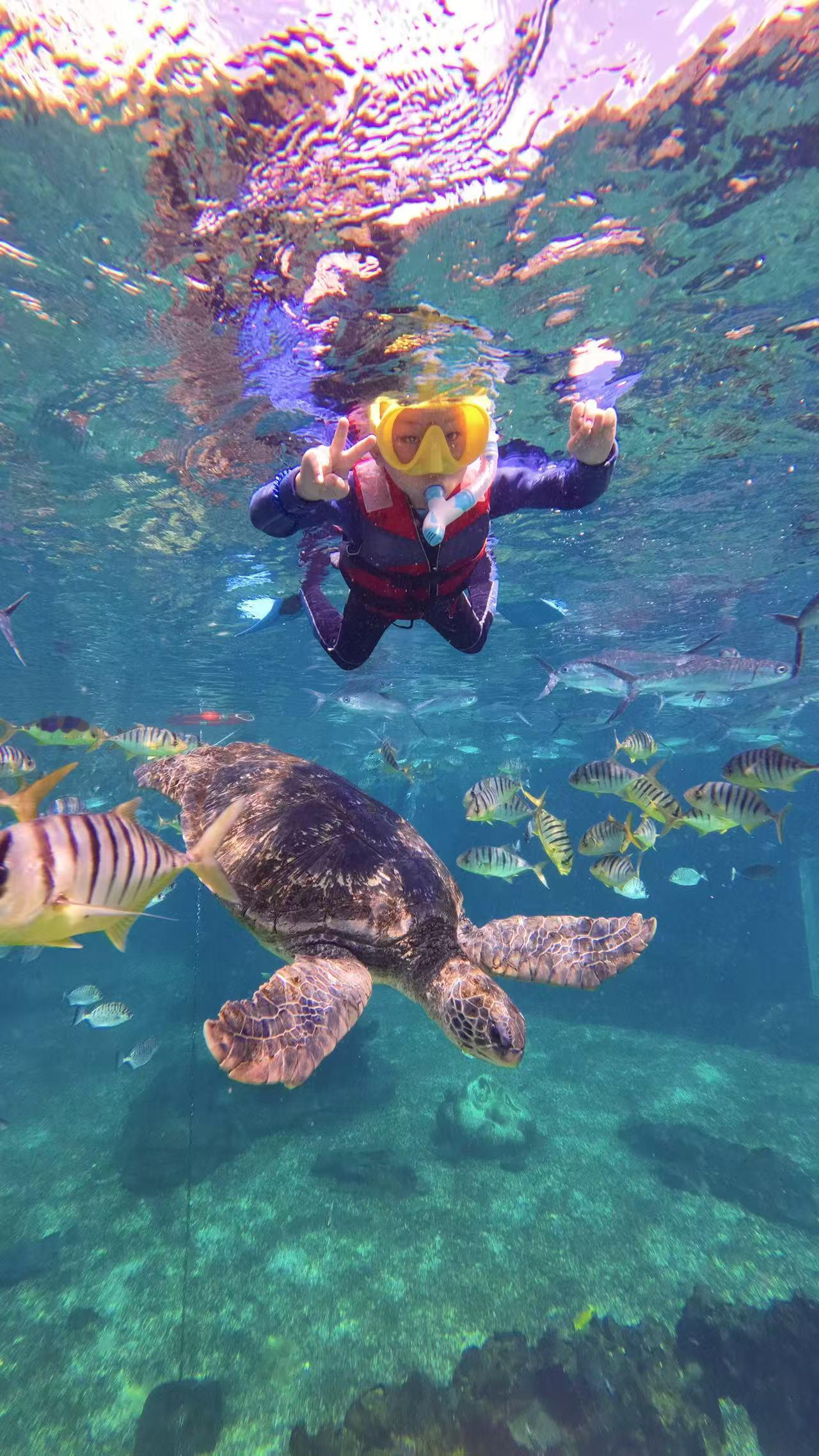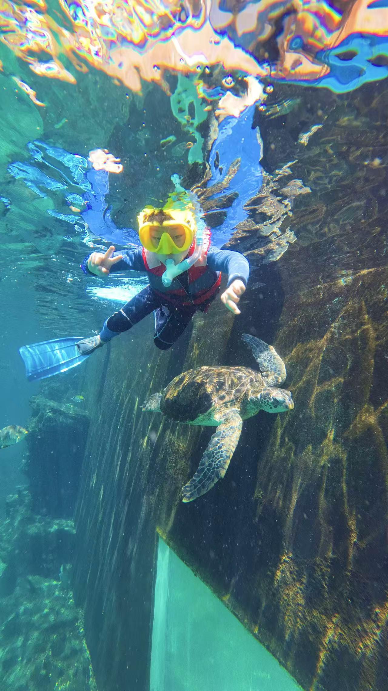 带娃去三亚海棠湾别错过浮潜,孩子特别有成就感,玩了还想玩。 这次带我π宝去海棠湾洲际酒店的潜水中心体验浮潜,孩子从刚开始的新奇和紧张,到在水下与大海龟和鱼快乐合影,玩得开心的不亦乐乎,这几天还嚷嚷着要再去呢。 潜入深蓝,去看看海底风景;这是面向5岁以上小朋友体验的浮潜项目,有专业的教练,专业的设施,让孩子对潜水运动有了初步的了解,对海洋生物有了更多的了解,锻炼了身体和胆量,也增长了知识,值得推荐。记录我的2026 冬日生活打卡季