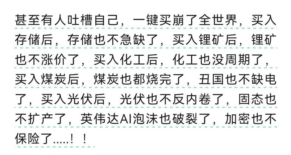 看一位网友的吐槽很有趣:买存储后,存储就再也不缺;买锂矿后,锂矿就不再涨价;买化工后,化工就再没周期;买媒炭后,煤炭就都烧完了;买光伏后,光伏就不反内卷……总之,买啥啥跌。 仔细想来,这不是个别,我身边的股友绝大部分都是这个爱追涨的庞大群体。他们对信息不敏感,只重图形和情绪,等先知先觉者把股价炒高炒热后才在高位杀进去,大概率就是刀口舔血,如跑得慢很可能就被刀割舌。 为什么说散户牛市比熊市更能亏,根本原因就是高位追涨站岗呗!当下属于震荡市,热点轮动太快,追涨杀跌基本上要倒霉。