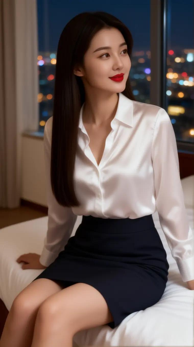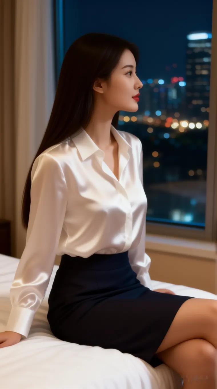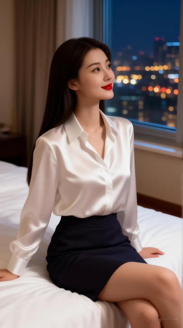 夜晚河畔的优雅穿搭,粉色套装与城市夜景完美融合