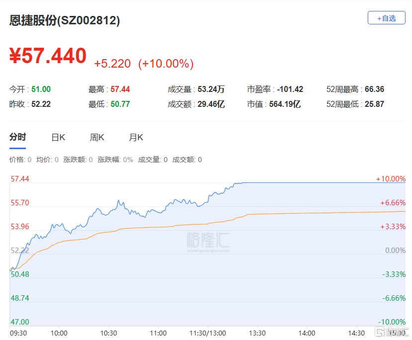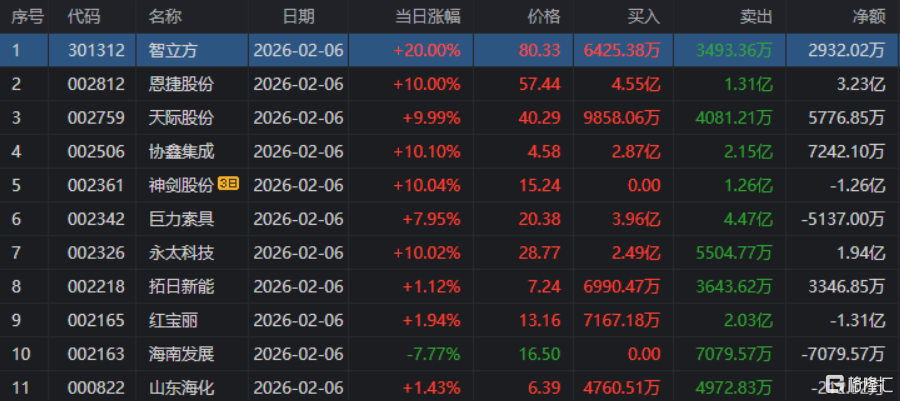 龙虎榜单日净买入额前三为恩捷股份、洲际油气、杉杉股份,分别为6.1亿元、3.8亿元、3.13亿元。