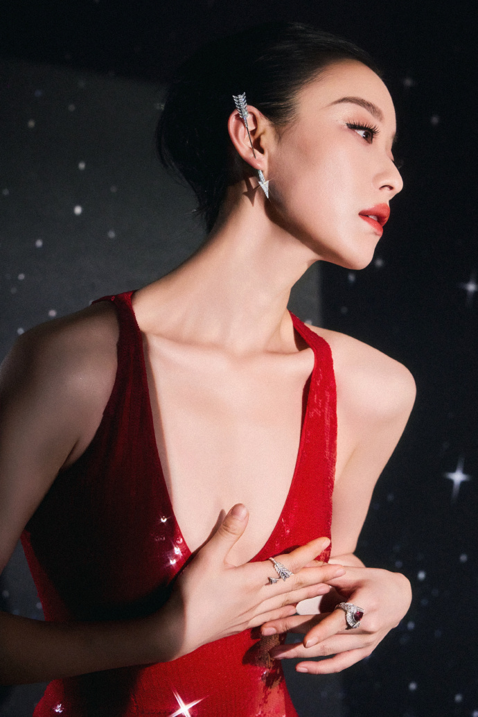 倪妮微博之夜,红裙热辣