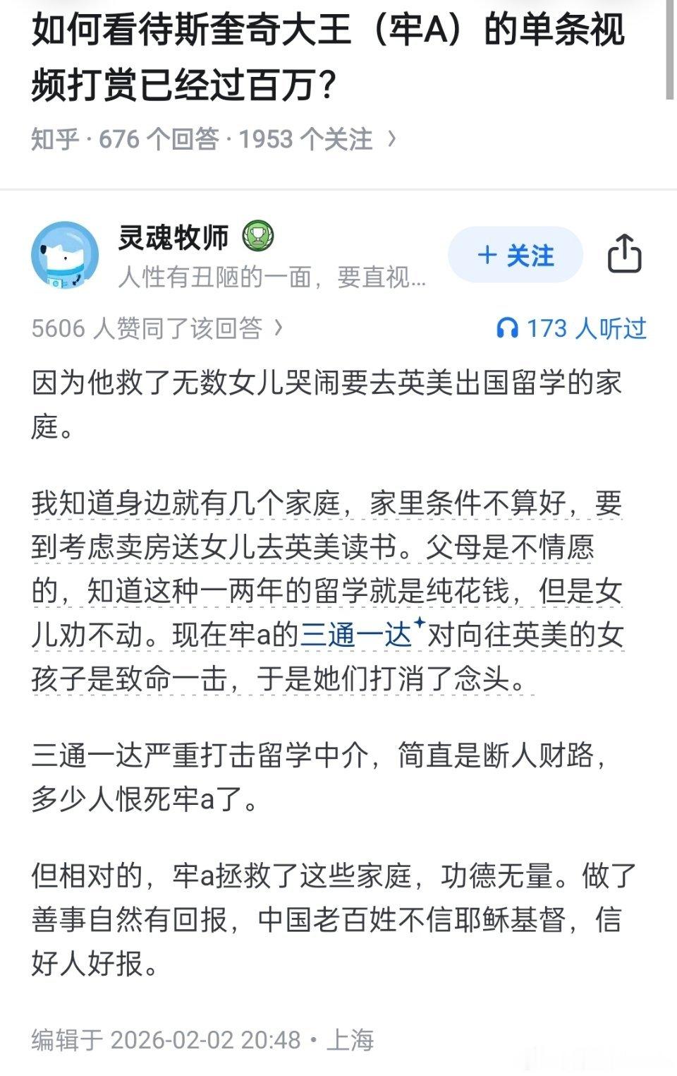 牢A功德无量!拦下了多少准备留学的家庭免于“人财两空。那些家庭不打赏个万把心里过