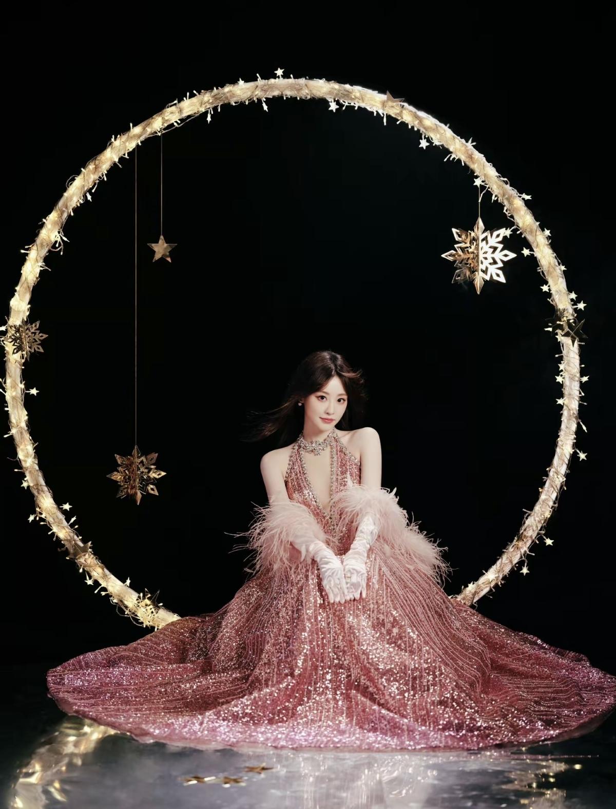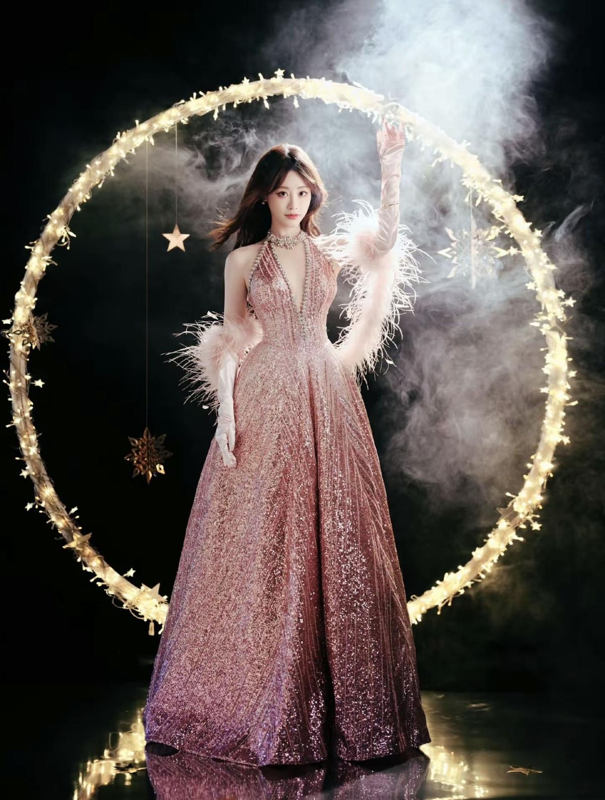 刘亦菲的礼服造型真的绝了![比心]玫瑰红抹胸裙一出场就惊艳全场,亮片如银河倾洒,