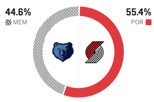 赛前,美媒ESPN预测本场比赛,开拓者胜率为55.4%,灰熊胜率为44.6%。