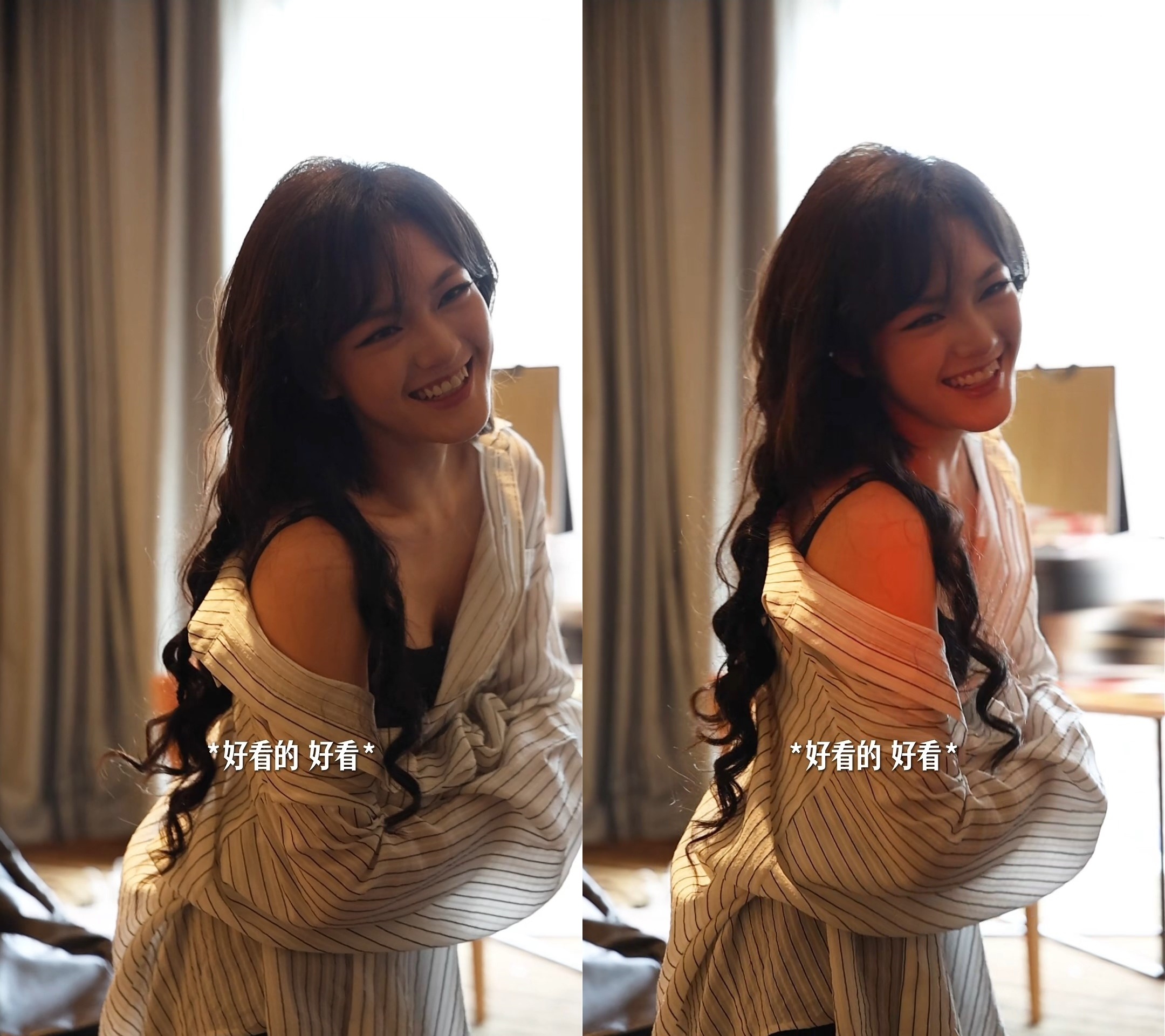 文淇的性感是自由生长的 沦陷在微博之夜vlog的妆造里!黑色文胸叠条纹宽松衫,轻露香肩氤氲慵懒气息,上扬猫眼妆注入清冷锐度。她的时尚从非刻意打造,而是少女娇憨与锋芒的自然交织,如野草般肆意蔓延,尽显鲜活姿态。