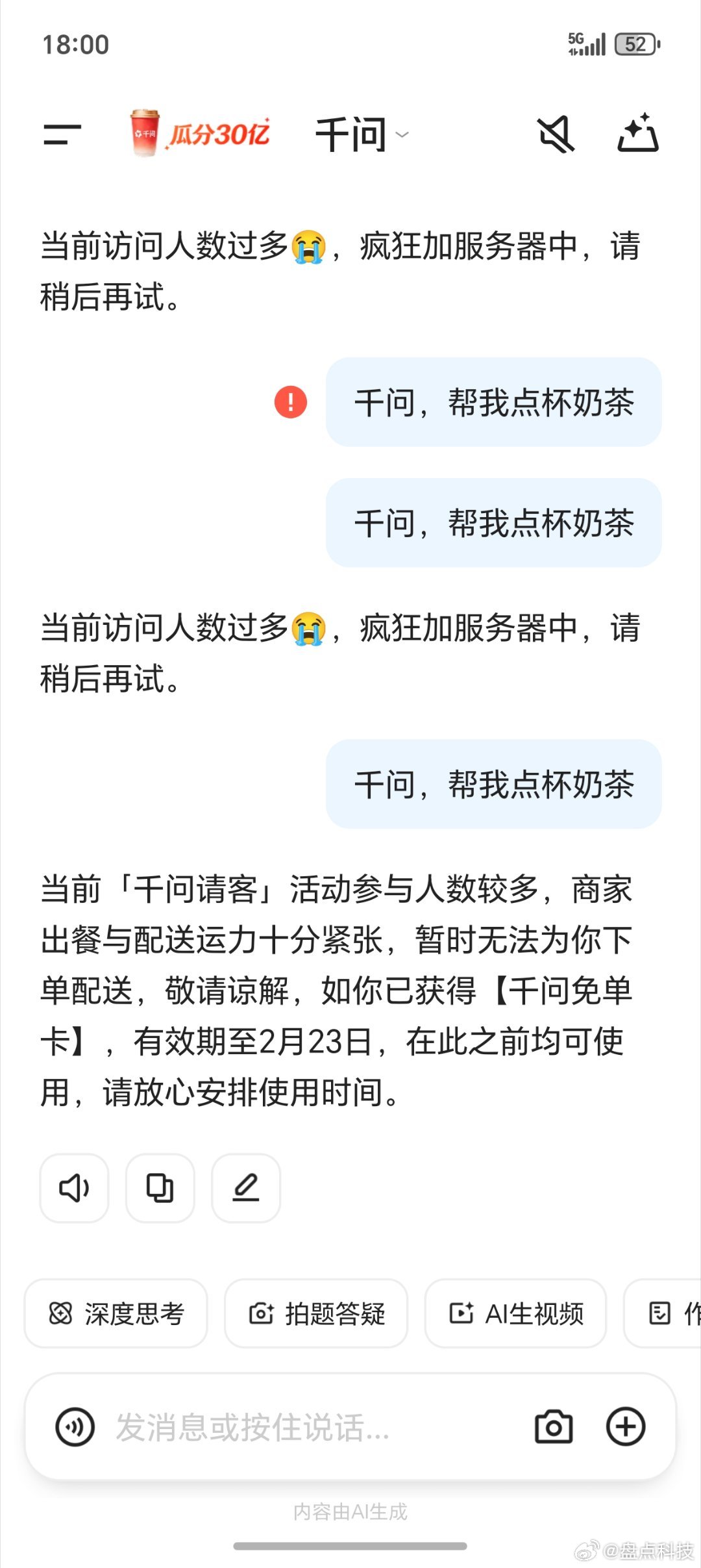 已经囤到了七张25元免单卡过年可以吃大餐了吗?那就等着千问服务器调整过来了,感觉