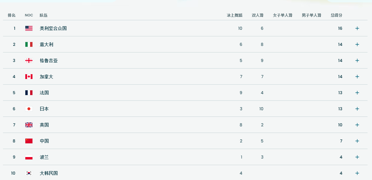 目前,中国队以7个积分暂时排名第八。
