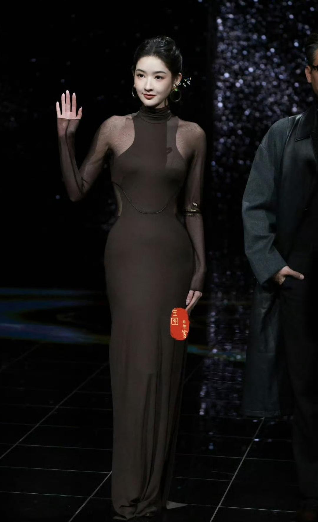 王玉雯微博之夜这身裙子真没选好。 这棕色透纱紧身裙也太挑人了,腰腹、肩背、腿部线条全暴露在外,腰侧还有镂空设计。 多一两肉显臃肿,少一点曲线又太干瘪,但凡比例差一点都能直接翻车,普通人穿妥妥的灾难现场! 幸运的是,王玉雯身材扛住了,整体表现还不错,但是架不住细看。 离近处看的话,这衣服的纹理、褶皱太过明显,丧失了很多高级感。
