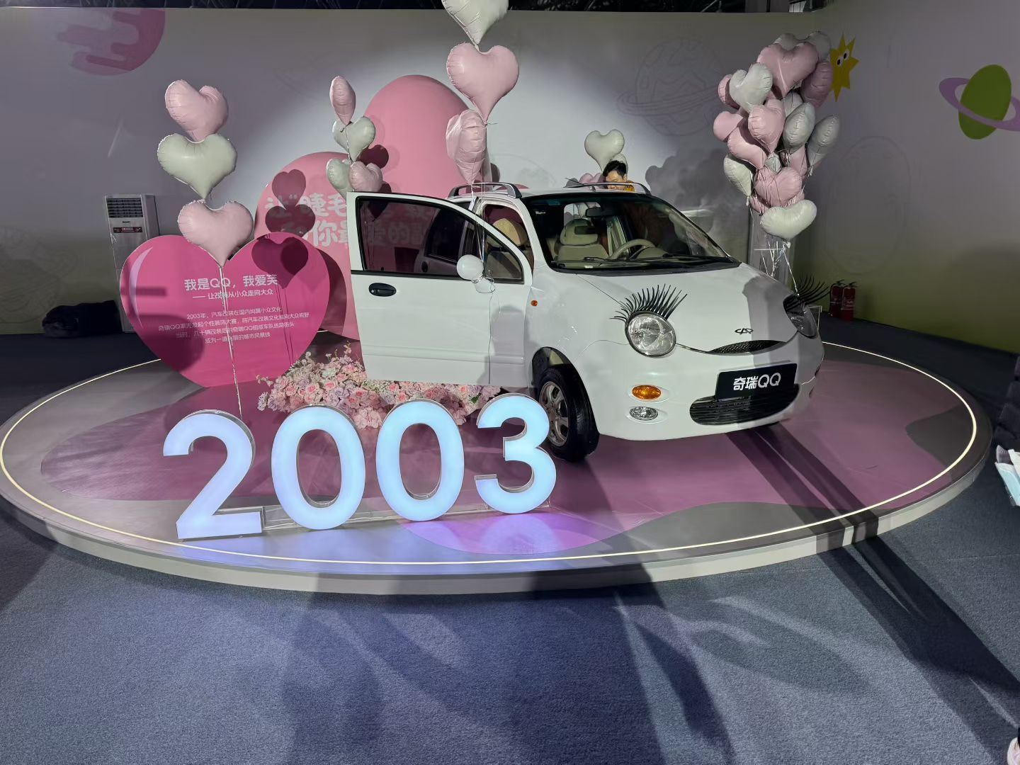 尹同跃乘坐初代奇瑞QQ登台2月6日,在“奇瑞QQ快乐之夜”发布会上,奇瑞汽车有